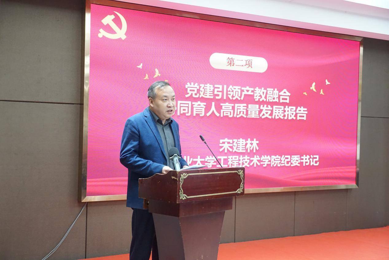 湖北工业大学工程技术学院纪委书记宋建林以《党建引领产教融合协同育人高质量发展报告》为题,分享了高校在党建引领下深化产教融合的实践经验。宋建林表示,学院秉持“育人为本、质量立校、产教融合、特色发展”理念,以“工程红”党建品牌为引领,构建“专业核心+职业核心”双核心人才培养体系,打造了一支兼具理论功底与实践经验的“双师型”师资队伍。