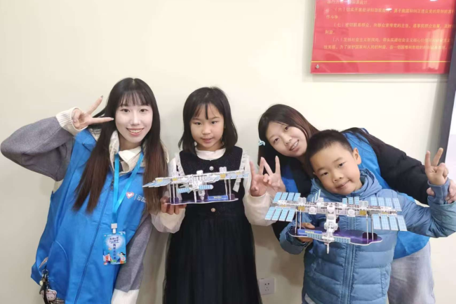 “这是我们自己做的‘手工模型’,我想把它送给为祖国造火箭的科学家爷爷!”12月7日,在省农科院社区活动室里,孩子们高高举起亲手制作的空间站模型,眼中闪烁着自豪的光芒。这是湖北工业大学工程技术学院艺术设计系艺馨志愿服务队深入社区开展“两弹一星”精神宣讲的生动一幕。