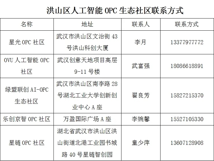2026年2月,《武汉市支持人工智能OPC创新发展若干措施》出台,鼓励各区结合区域产业基础,布局建设人工智能OPC生态社区。洪山区依托科教资源优势迅速响应,全面启动建设,致力打造“载体支撑、机制协同、要素保障、生态赋能”的OPC发展体系。