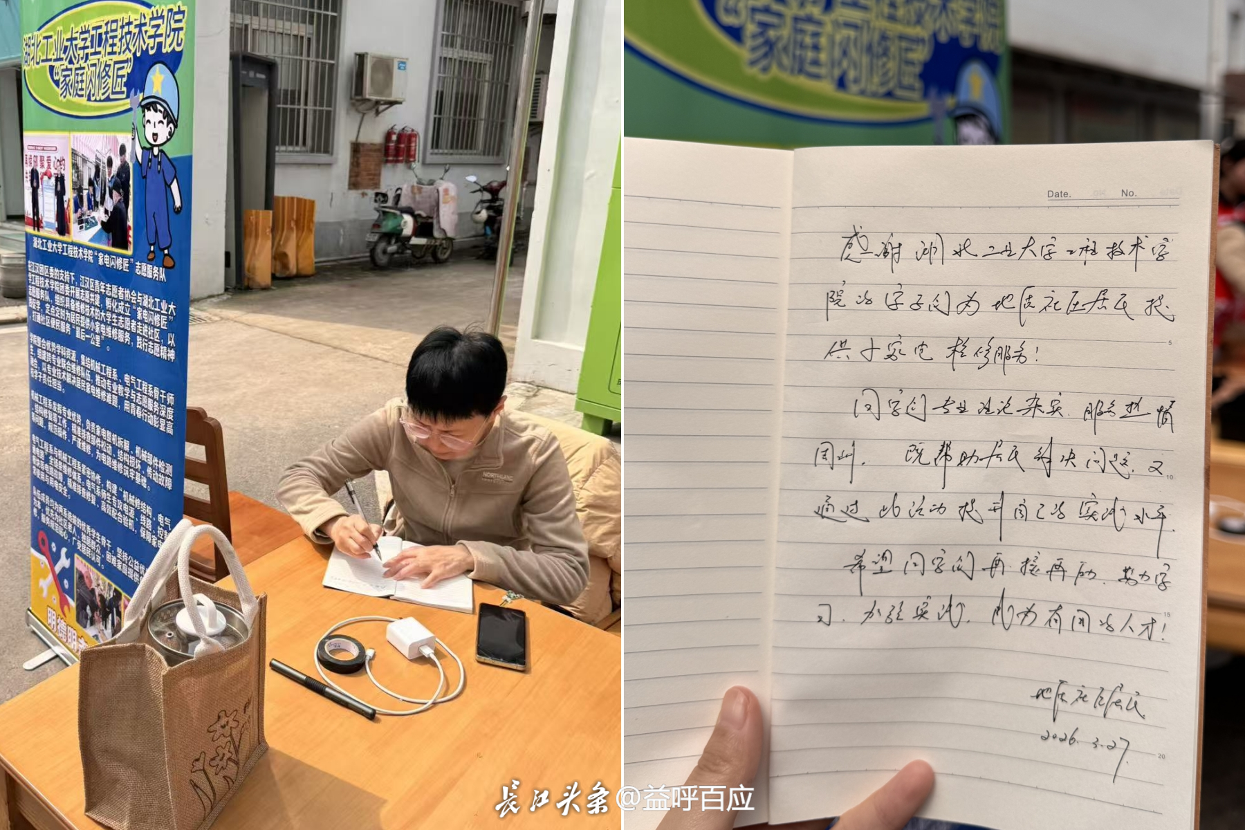 “没想到这么快就修好了,太谢谢你们了!”一封朴实的感谢信,满含着江汉区万松街道武展社区地质大院老人的真挚谢意。3月27日,江汉区青年志愿者协会携手湖北工业大学工程技术学院“家电闪修匠”志愿服务队走进江汉区万松街道武展社区地质大院,开展免费小家电维修志愿服务,用专业技能与青春热情温暖了这座老社区。