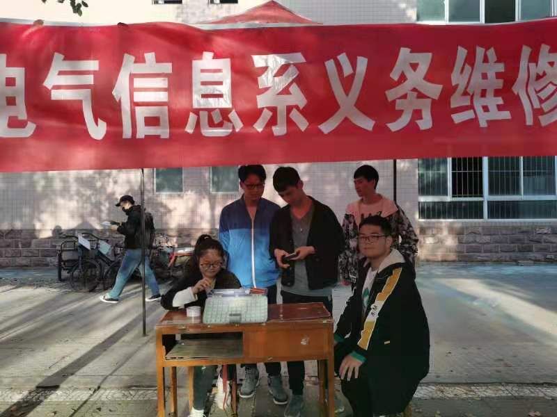 为帮助同学们解决电脑故障,传授电脑操作的基本技能知识。3月25日,我院电气信息系于工程2号楼旁进行“电气系义务维修”摆点。