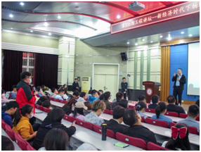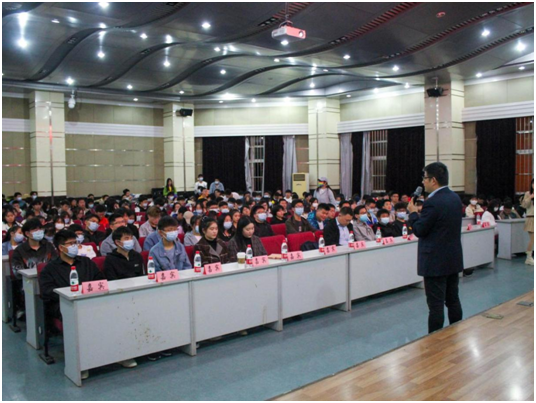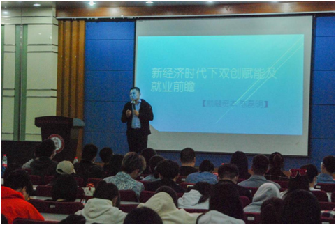 陈磊明从中国经济、科技日新月异的新时代下就业难、竞争大的实际社会情况出发,结合自身就业经验,给同学们提出两点建议:一不论方向如何,都要有明确的目标;二要选择好的平台磨练自己的能力。只有不断的反思自己,保持自律,养成良好的工作习惯,保持自身优秀,才能适应当下社会和未来变革。同时他也对大学生创业现状从政策、经济等方面做出分析,提出创业要以政策为基础,自身本领强大,凝聚团队力量,坚持不懈才能最终获得成就,为有创业想法的同学点明努力方向。