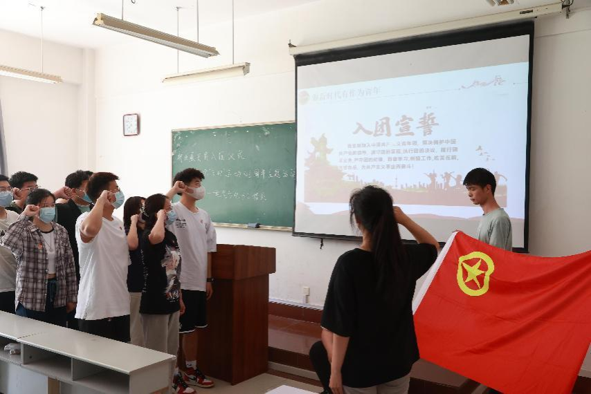 电气与电子工程系于五四青年节,举行了隆重的新生入团仪式。新团员的加入为我系团支部输入新的血液,增添了更多的力量。团员们面向团旗,高举右拳,以最饱满的热情,最洪亮的声音念出入团誓词。一句句铿锵的诺言,让同学们感受到作为团员的光荣和使命,今年是建团百年,今天,他们收获最好的青春纪念。