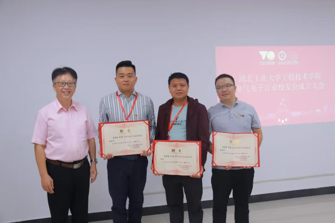 电气系主任张小华首先向所有校友致以诚挚的欢迎。谈及电气系这些年的发展变化,张小华主任从专业发展、师资力量、校企合作等方面介绍了电气系近些年的发展,并为第一届电气电子行业校友会会长04级校友王磊、副会长07级校友詹健、08级校友柳翰颁发聘书。