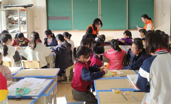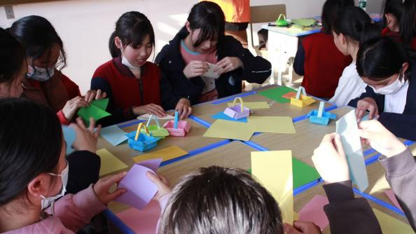 手工课上,志愿者结合菜篮的谜语开始花篮的折纸教学,并穿插脑筋急转弯题目让孩子们动手又动脑,启发孩子们思考,课堂生动有趣。教学活动结束后,为表现优异的孩子颁发小礼品。
