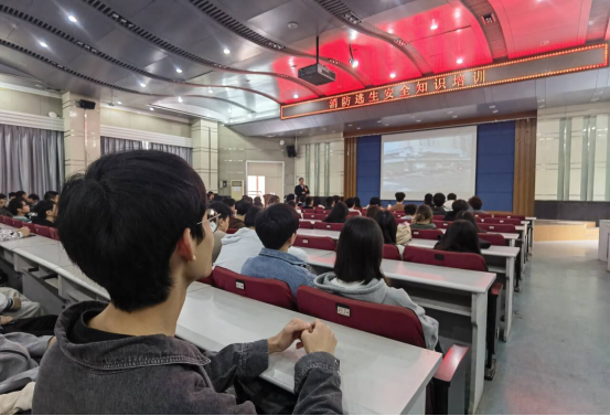 活动伊始,消防教员徐教官进行了消防安全知识宣讲,呼吁同学们牢记“消防安全无小事,重视消防,人人有责,水火无情,要防微杜渐”的消防理念。他通过校园中存在的消防安全隐患,结合真实案例,告诫大家注意公共区域的消防问题,引起同学们对消防安全的重视。