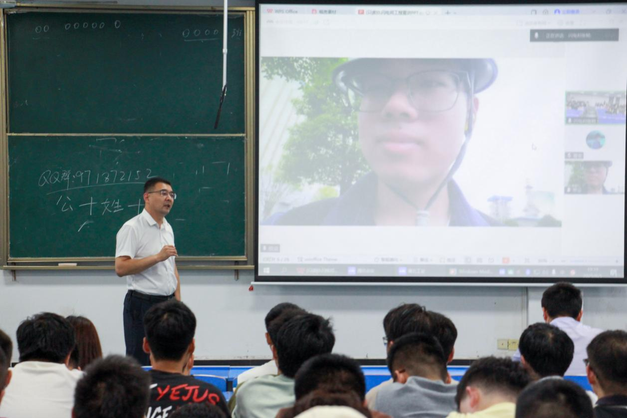 此次动员会特别邀请了合作企业武汉闪电邦电力工程有限公司,武汉闪电邦副总经理孔祥清详细介绍公司岗位设置、人才需求、企业文化及发展历程,全方位展现了企业风貌。此外,本次动员会以云端连线的方式,邀请两位优秀校友“云返校”分享实习就业经验。他们以“过来人”的身份,分享实习期间的成长故事、职场适应技巧与经验教训,并耐心解答学弟学妹们提出的“如何快速适应企业工作节奏”“专业知识与企业实际需求的衔接要点”等问题,让学生们对即将到来的实习有了更清晰的认知和更充足的信心。活动最后,武汉闪电邦电力工程有限公司现场收取同学们的简历,并进行初步面试。