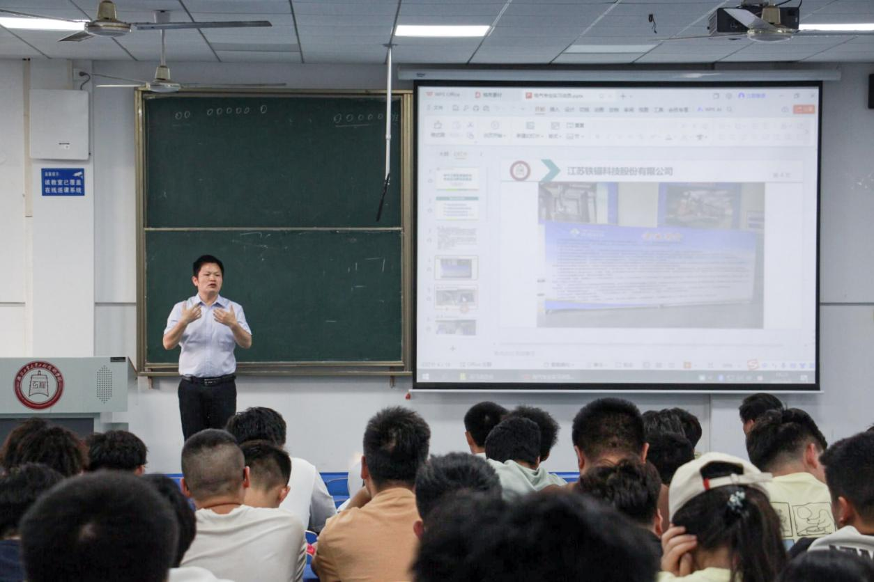 紧接着,系党总支书记夏欢聚焦同学们关心的实习就业热点问题,对江苏铁锚科技股份有限公司、江苏繁华应用材料科技股份有限公司、武汉闪电邦电力工程有限公司等多家企业进行全面介绍,以翔实信息帮助同学们初步勾勒出各企业轮廓。他提醒同学们,要珍惜实习就业机会,在工作中保持积极主动的态度,严格遵守企业规章制度,虚心向企业导师学习。同时,也要注重个人安全,包括生产安全、人身安全等,遇到问题及时与学校和企业沟通解决。