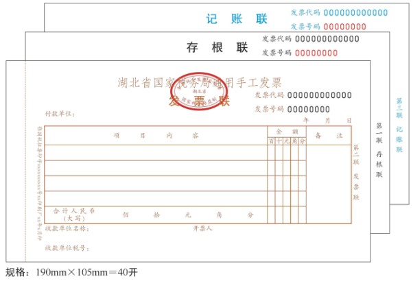 湖北省国家税务局通用手工发票(百元版、千元版)