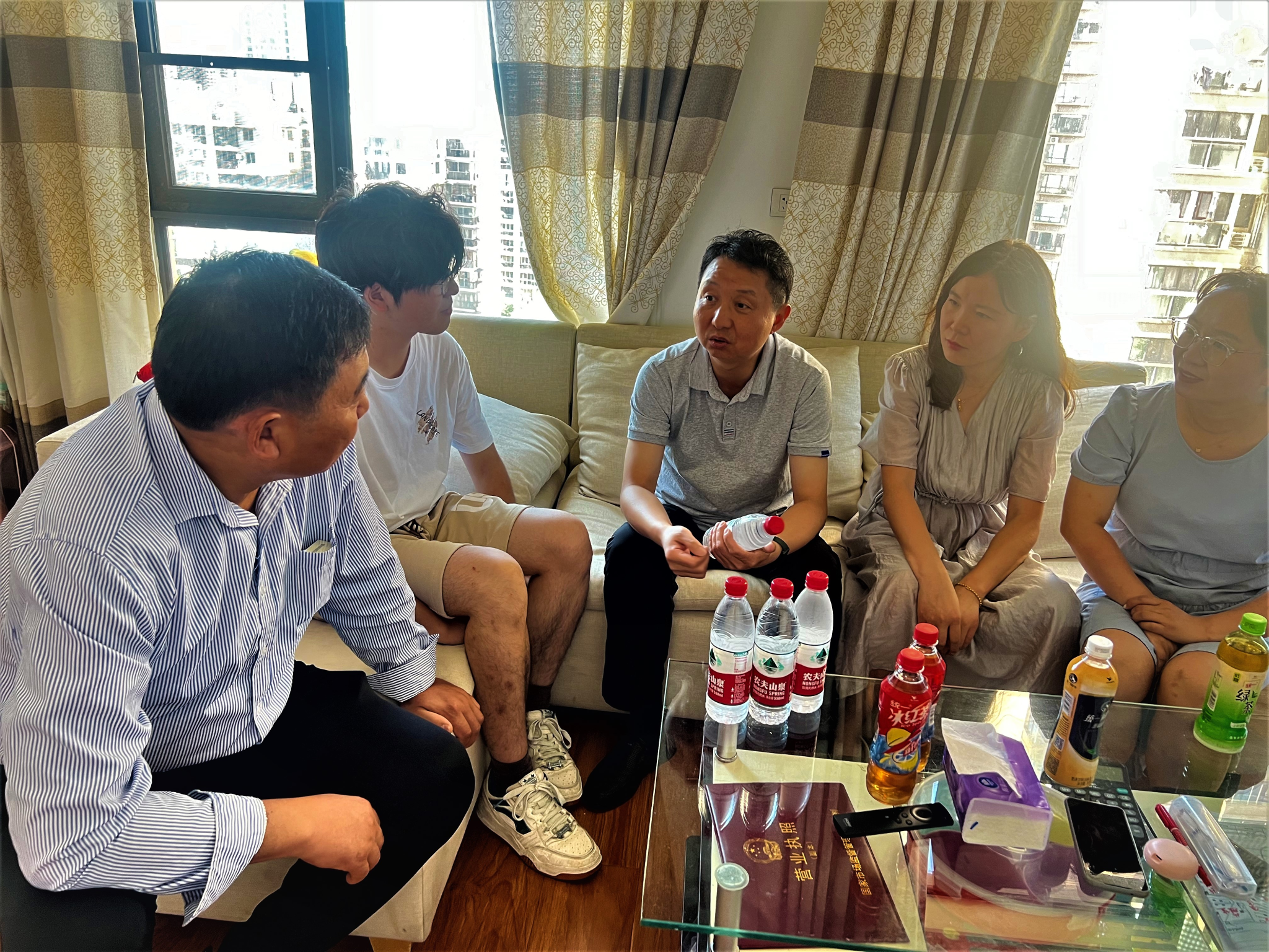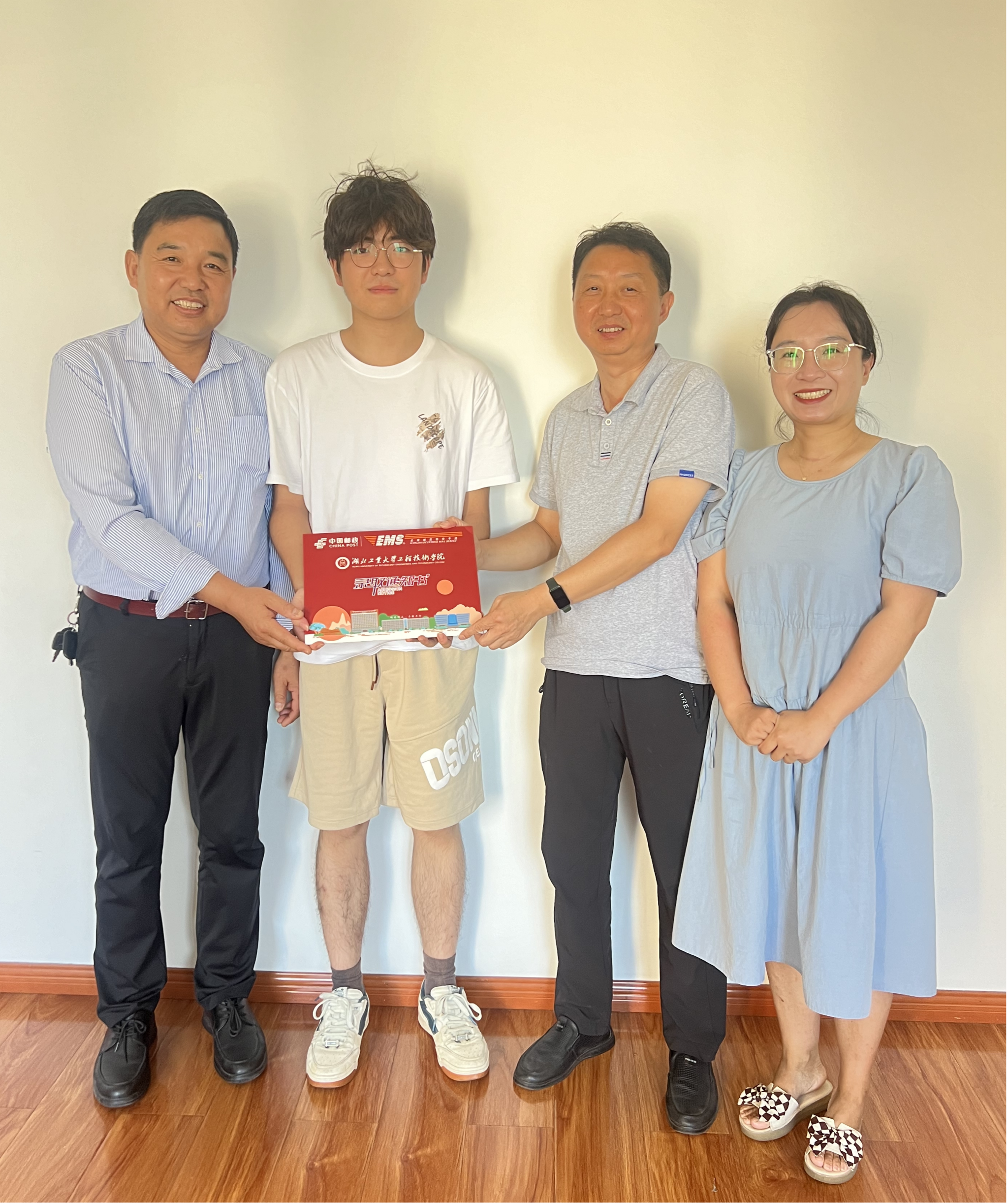 在武汉市硚口区新生汤康宇的家中,汤康宇及家长对学院亲自送达录取通知书表示感谢。汤康宇惊喜地发现,原来自己录取到计算机科学与技术专业学号竟然还是01,他开心地向孟院长讲述自己认真填报志愿的经过。詹堃和章霓也结合学生及家长提出的学习生活问题,就计算机系的人才培养和专业特色等方面情况进行了详细介绍。