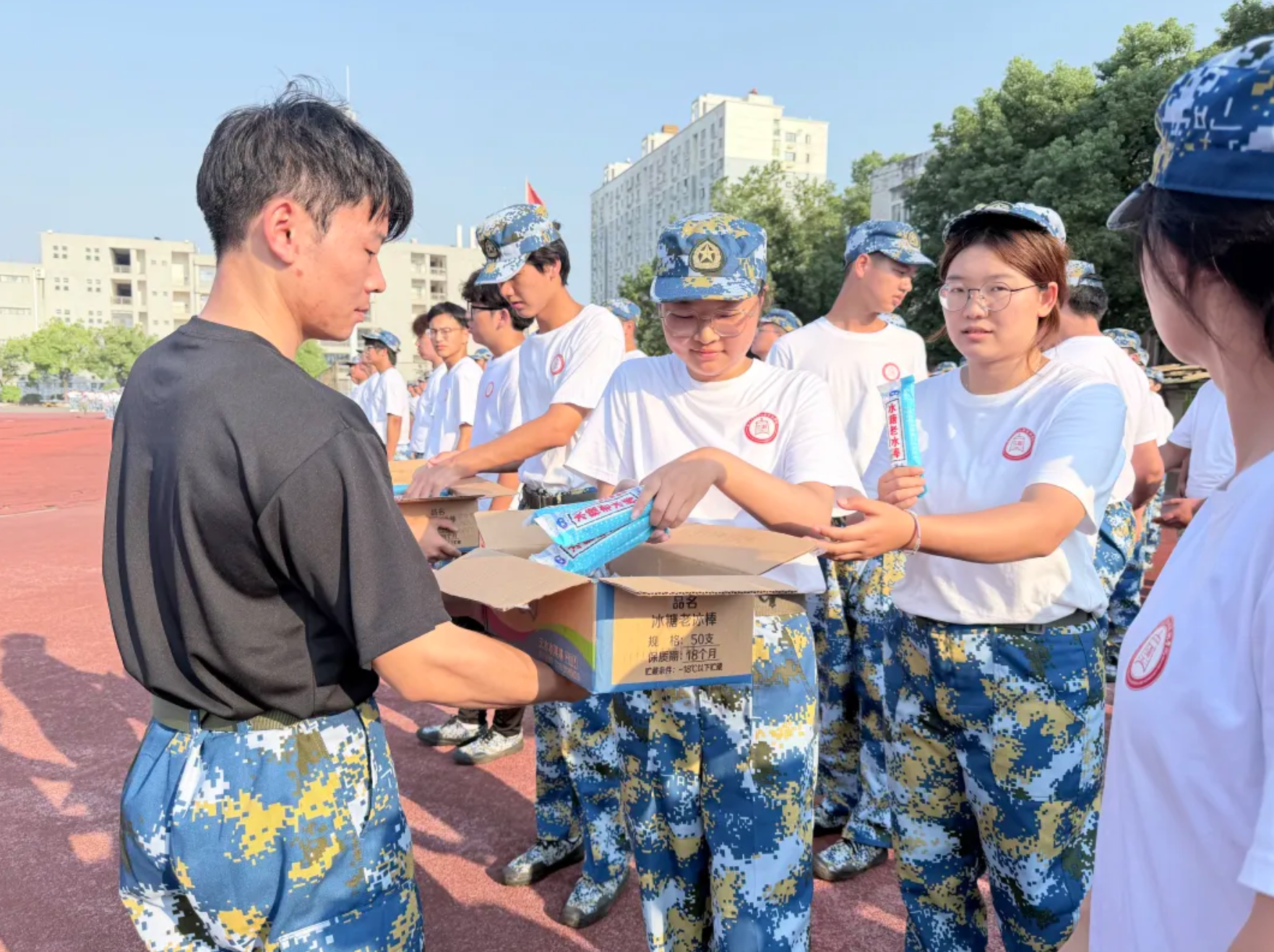 面对军训中的炎热天气,系部工作人员带着清凉的雪糕来到训练场,为坚持训练的新生送上夏日慰藉。冰凉的甜意驱散疲惫,也让新生们感受到来自系部的牵挂,以更饱满的状态投入后续训练。