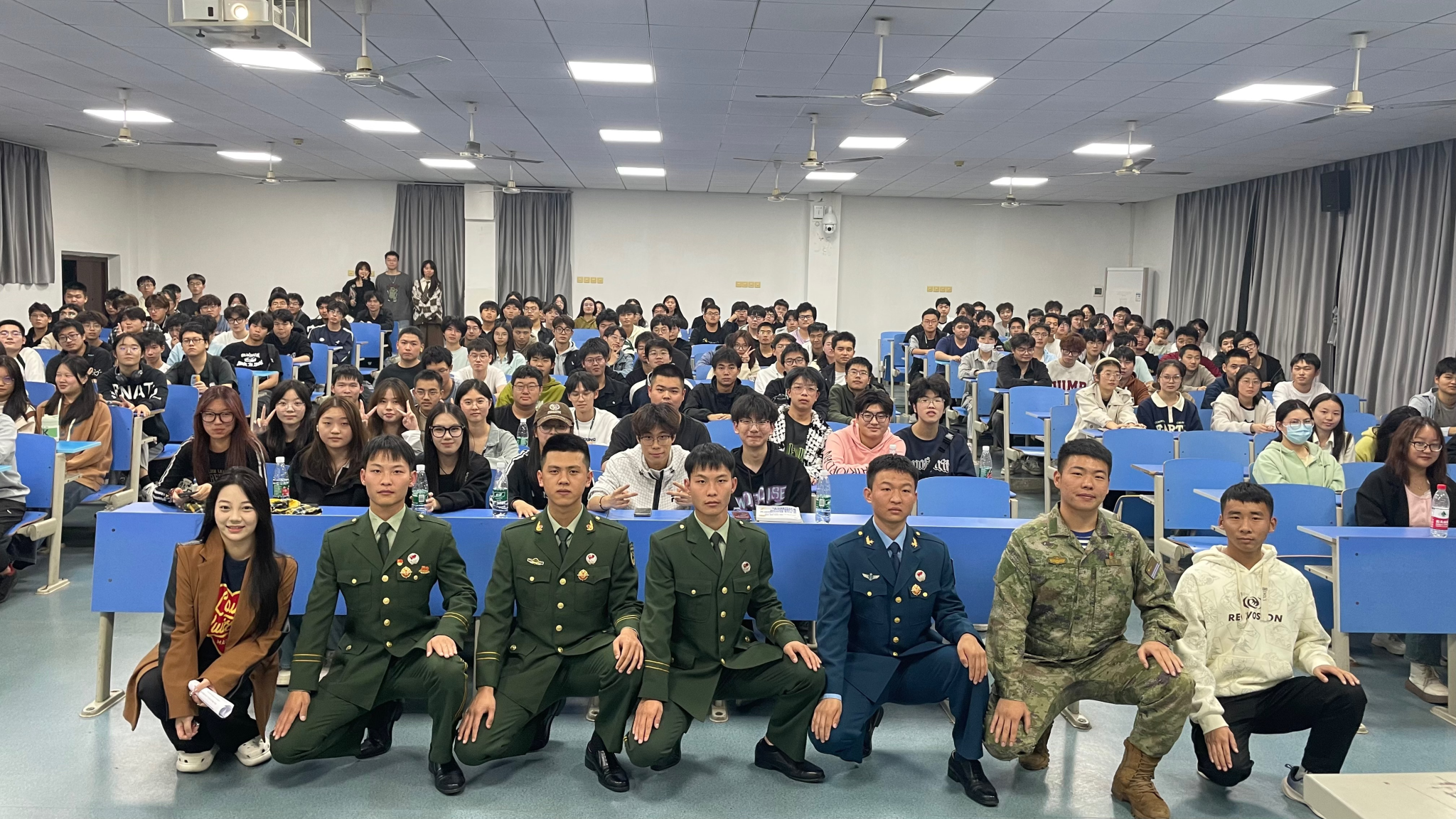 精彩的分享会不时爆发出阵阵掌声,在场认真聆听的众多同学都感触颇深,这不仅是一次征兵宣传,更是一次促进学风院风建设的励志会。意向入伍的22级周扬同学表示宣讲增强了自己对军旅生活的认识,激发了自己主动承担起保家卫国的大任,为实现中华民族的伟大复兴贡献青年力量的磅礴动力。