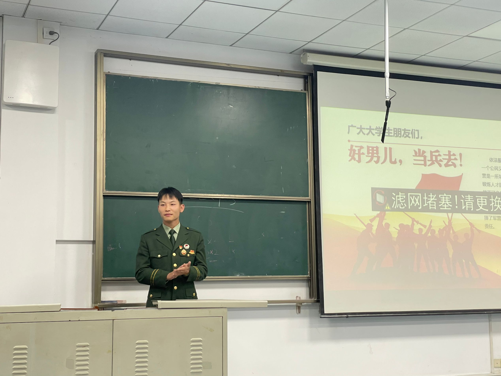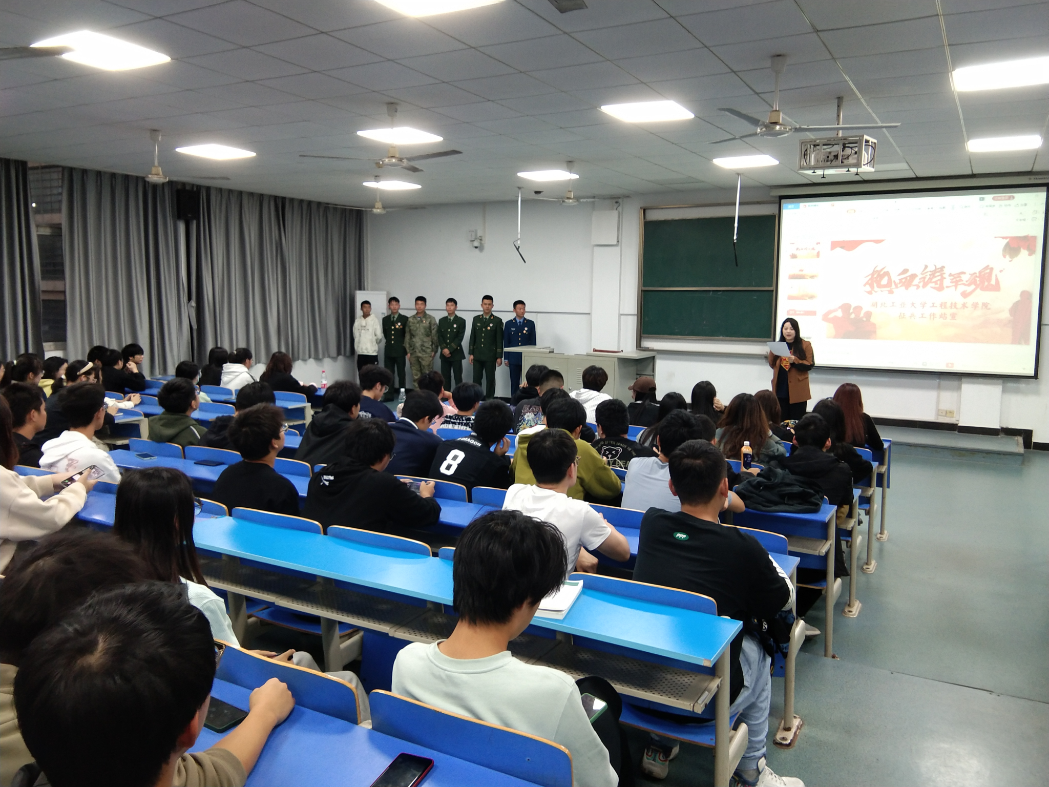 “树应征入伍之志,担保家卫国之责。”为鼓励学生积极参与应征入伍,引导青年学子树立强军梦想,帮助大学生了解、掌握应征入伍相关政策和流程,11月8日,计算机系在工2D004教室开展国防形势教育暨大学生征兵动员会,激发青年学生携笔从戎,报效祖国的赤子雄心。本次动员会由刘嘉欣老师主讲,并有退伍士兵组成的征兵入伍宣讲团分享自己的军旅故事和入伍感想。