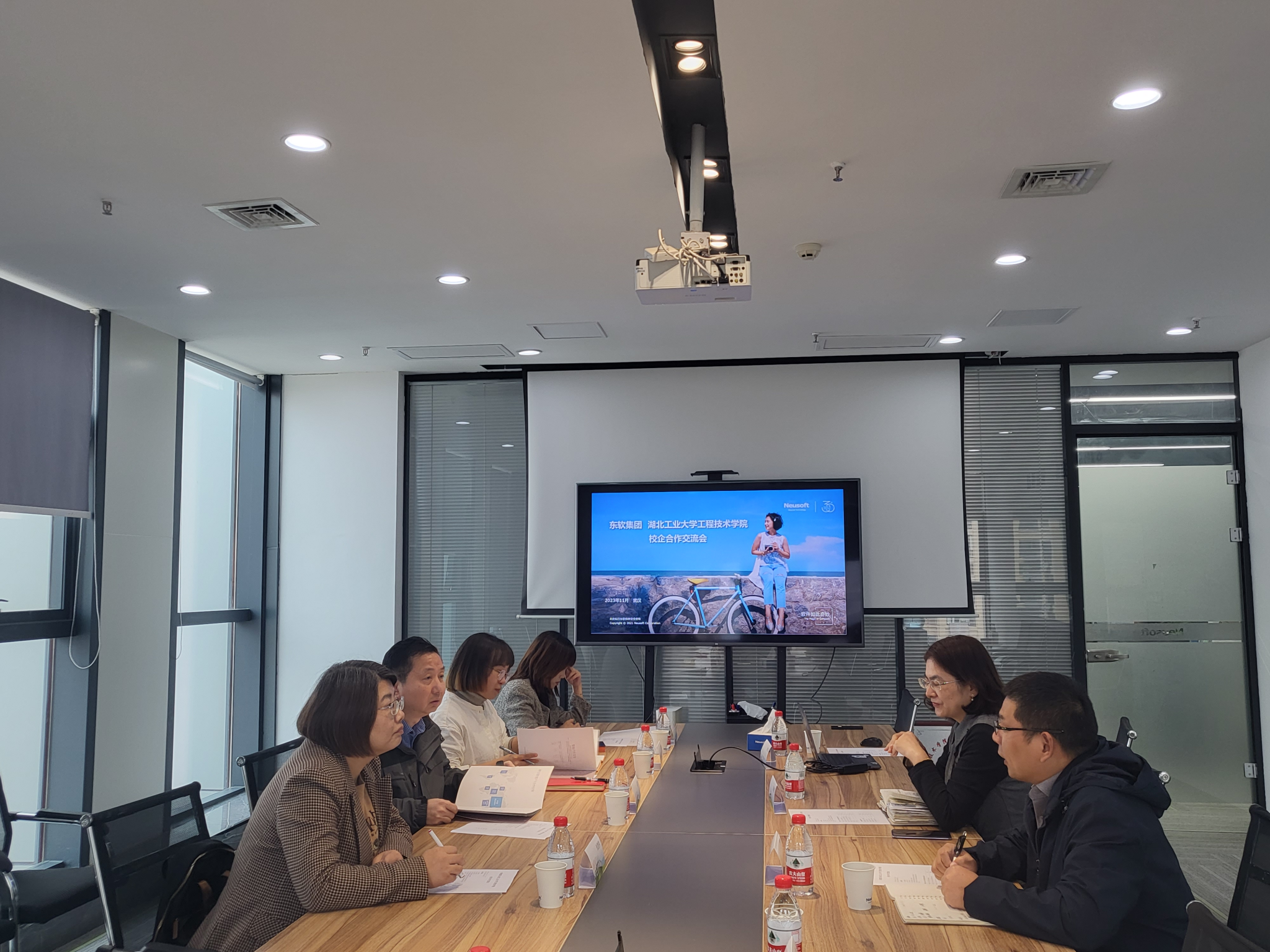 东软集团武汉平台人力资源总监陈晓蕾对孟涛一行的到访表示热烈的欢迎。座谈会上,校企双方就应用型人才培养、企业人才需求、实习就业、应届生就业情况与校企合作需求等方面展开交流。企业负责人详细介绍了集团发展历程、业务模块、人才培养路径、校园招聘、校企合作模式等方面内容,并期待未来双方在产教融合、实习就业方面有长远深入的合作。孟涛介绍了学院人才培养定位、专业群建设、产教融合等方面内容,他表示,希望通过结合计算机系的学科优势,与集团共同构建协同育人的新格局,在拓宽就业渠道、开展实习实训、加强职业生涯规划、提升培养质量,进而向社会输送更多实战型和应用型人才。