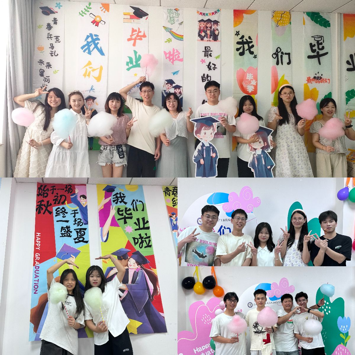 活动现场,棉花糖机在同学们的期待中缓缓启动,伴随着机器的嗡嗡声,一团团的棉花糖逐渐成型。毕业生们在老师的指导下,将不同颜色的糖浆倒入机器中,不一会儿,形状各异、色彩缤纷的棉花糖便纷纷出炉。毕业生们用棉花糖机亲手制作出五彩斑斓的棉花糖,用这一份特别的甜蜜来纪念他们共同度过的美好时光。