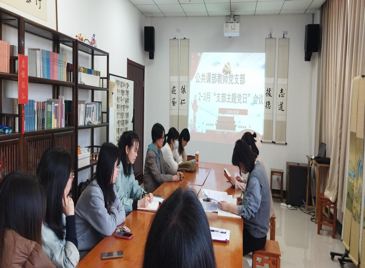 3月22日下午,公共课部教师党支部在南综806举行主题党日活动。理论课部党总支书记胡丽及全体党员教师参加活动,活动由党支部书记田晓燕主持。