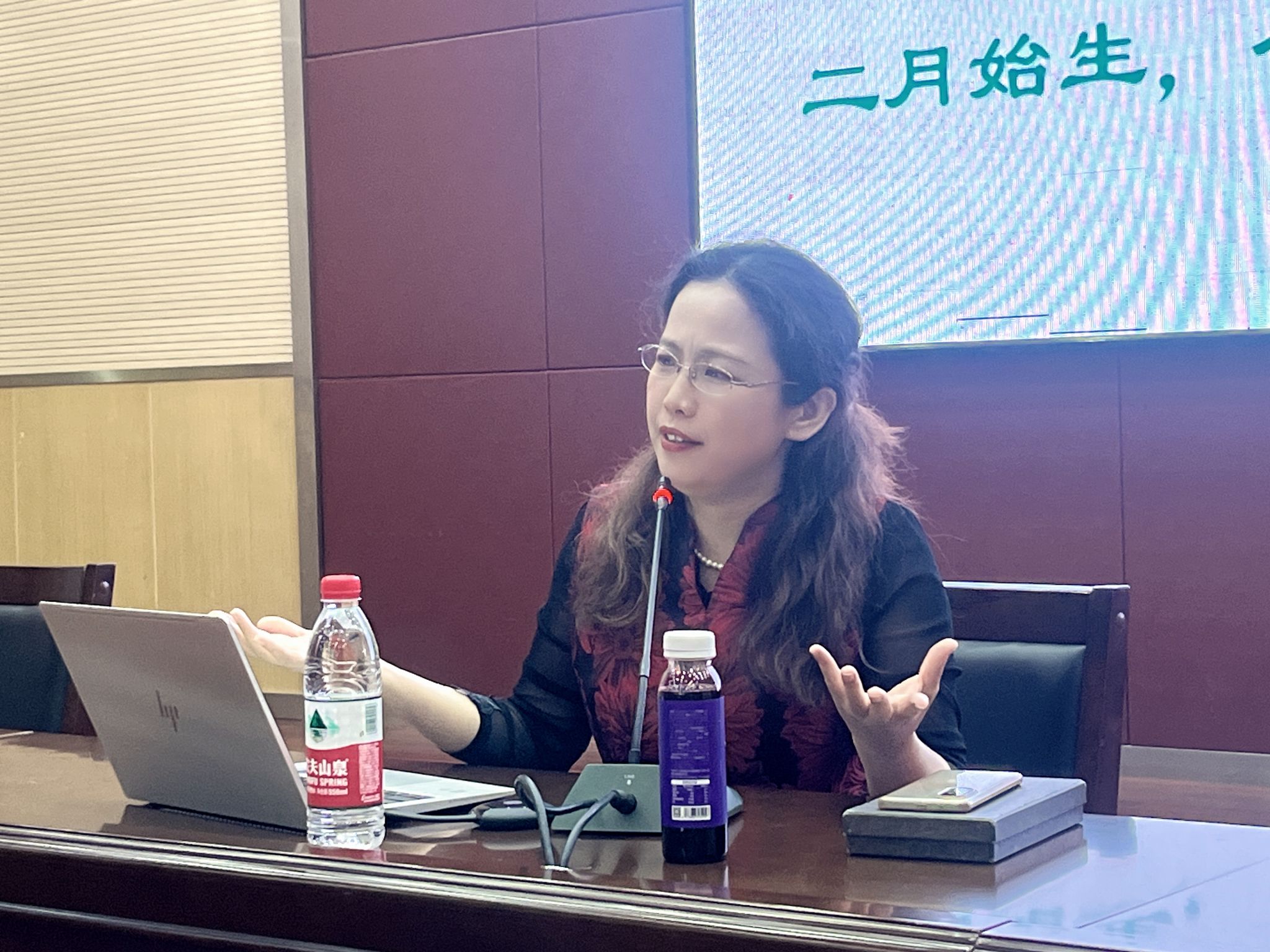 讲座前,学院图书馆刘珺馆长、刘维老师与校图书馆王书记、萧馆长做了交流,探讨大家共同关心的校园文化建设、人文讲座开展、读书会组织等相关话题。刘珺馆长主持讲座,王道明书记全程参加了讲座。