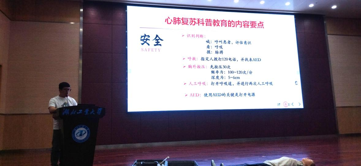 2025 年 5 月 28 日,湖北工业大学图书馆报告厅内气氛热烈,公共课部职业核心能力教研室以 “急救知识进校园,劳动育人护健康” 为主题的公益讲座成功举办。本次活动特邀武汉大学人民医院急诊科专家胡鹏主讲,将急救技能培训与劳动教育深度融合,通过 “理论教学 + 实践劳动” 的创新模式,引导师生在学习生命救护知识的过程中,体悟劳动精神的深层内涵,强化责任担当与实践能力。