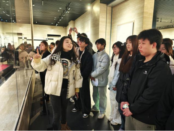 “原来每一道纹样都凝结着古人的智慧,每一件文物都在诉说历史!”参观过程中,同学们不时发出感叹。中华民族古代文明的辉煌与工匠精神,激荡起他们心中强烈的文化认同与自豪感。实践环节中,学生们化身“临时讲解员”,主动为来往游客分享所学知识——从越王勾践剑的纹饰寓意,到曾侯乙编钟的礼乐文化,生动展现出我院学子乐于传播文化、服务社会的精神风貌。