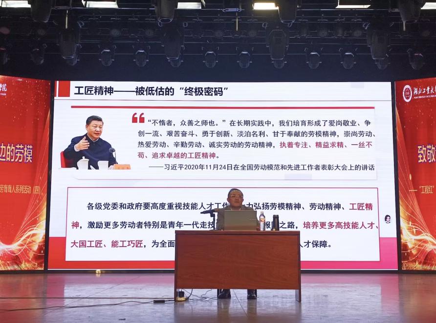 为深化劳动教育改革,将劳模精神、工匠精神融入人才培养全过程,12月4日晚上,学院“工程红”劳模工匠校园行暨劳动育人系列活动第四期——“致敬我们身边的劳模”在博雅园报告厅顺利举办。湖北工业大学教务处处长、湖北五一劳动奖章获得者孙浩受邀作专题报告。学院副院长姜伟出席活动。