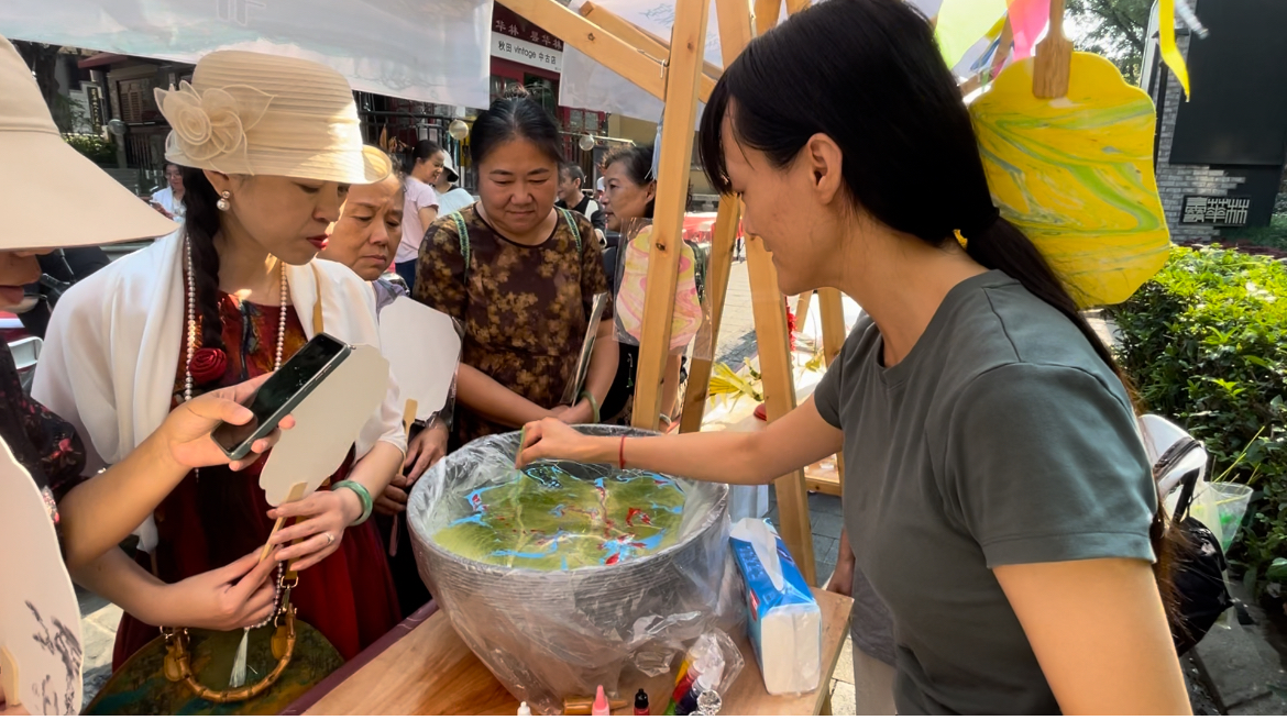 漆扇,作为我国非物质文化遗产的一部分,以其独一无二、不可复制的图案制作过程,吸引了现场众多居民的围观。在千家宴上,漆扇非遗传承人现场展示了漆扇的制作过程,指导居民亲身感受漆扇的魅力,将一片片普通的扇子变成了一件件精美的艺术品,让人叹为观止。