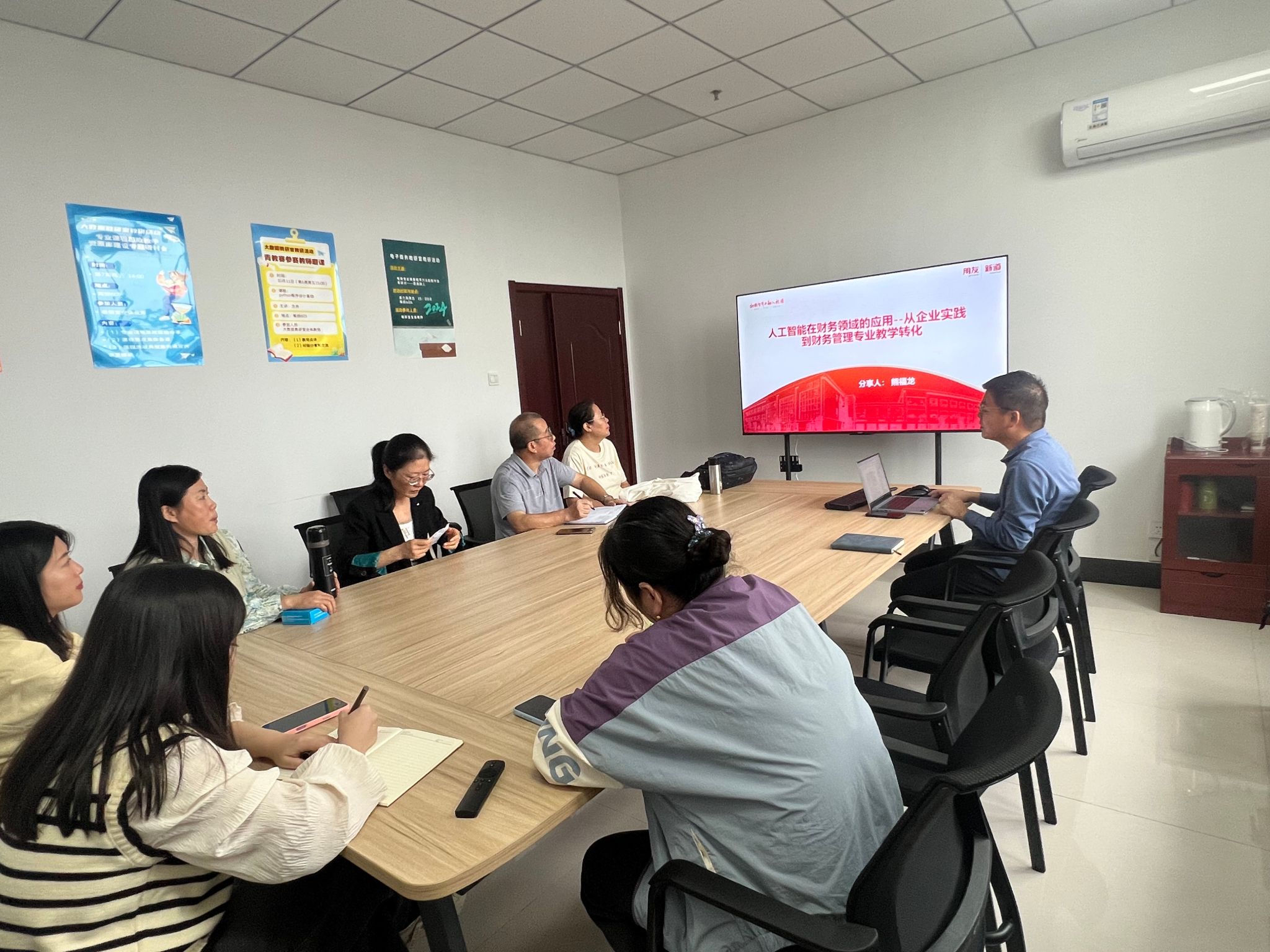 教研室老师们与熊福龙老师进行了深入的探讨和交流。此次会议,不仅深化了教师们对人工智能在财务教学中应用价值的理解,更通过企业真实场景与教学转化路径的深度剖析,为财务管理专业的数智化升级提供了可落地的实施方案。校企双方将继续探索数智化人才培养新模式,为财务教育高质量发展注入新动能。
