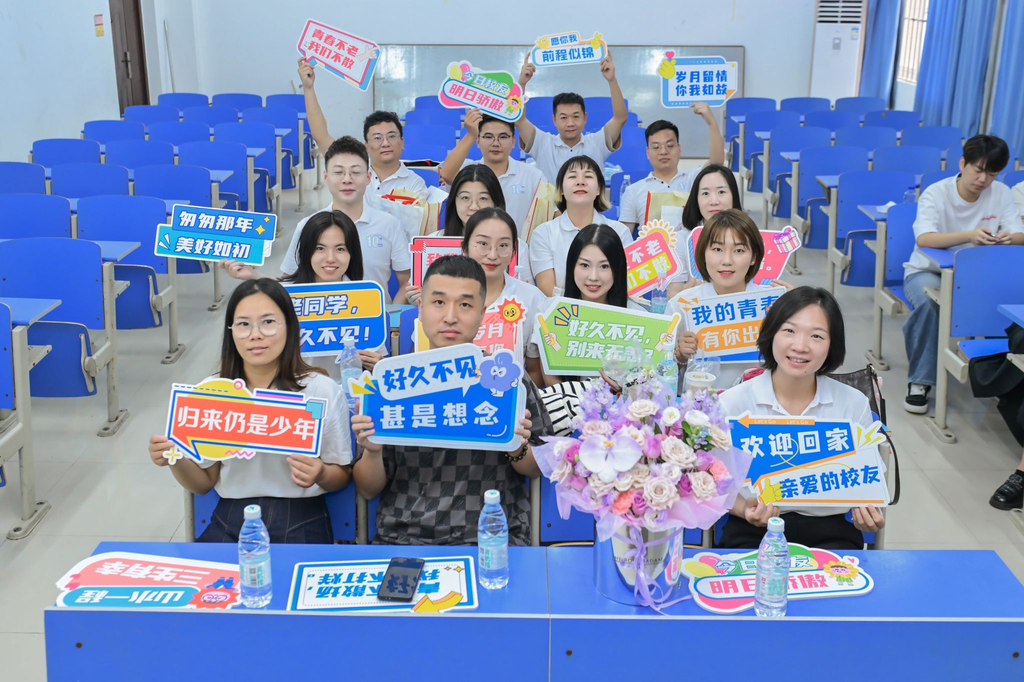 2025年10月1日,正值国庆佳节,管理系11gb营销1班的校友们怀揣着对母校的深深眷恋,从五湖四海齐聚校园,参加返校十周年主题活动。活动以“十载韶华各似锦,一朝聚首话知音”为主题,串联起校园重游、爱心捐赠、师生座谈、课堂追忆等多个环节,在重温青春记忆的同时,也为在校学子搭建起成长的桥梁。