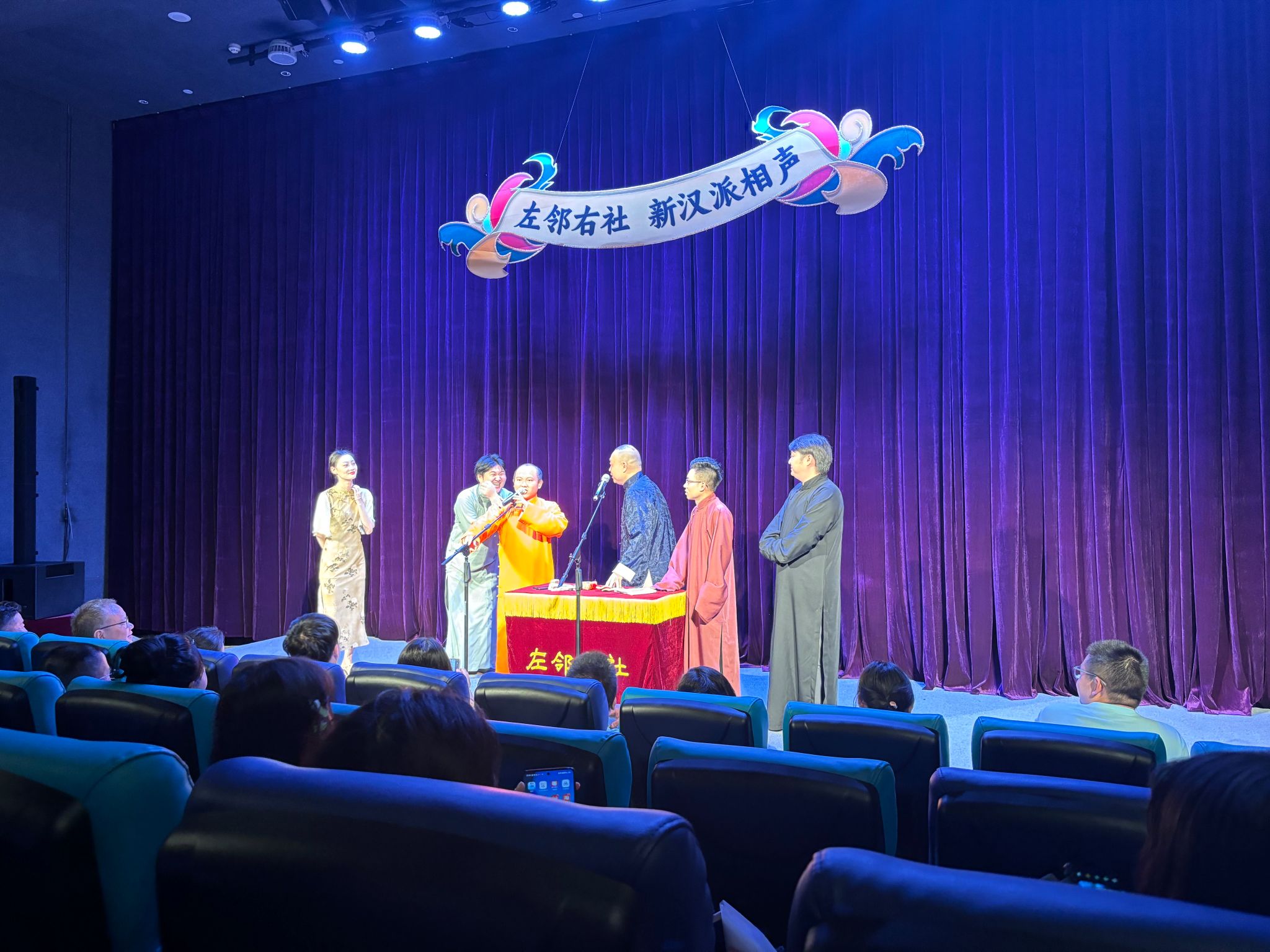 活动现场,来自武汉知名相声艺术团“左邻右舍”的演员们为教职工们献上了一场精彩的相声演出。演员们用幽默诙谐的语言、生动形象的表演,将生活中的点滴趣事和职场上的喜怒哀乐巧妙地融入相声中,引得现场观众阵阵掌声和欢笑声。