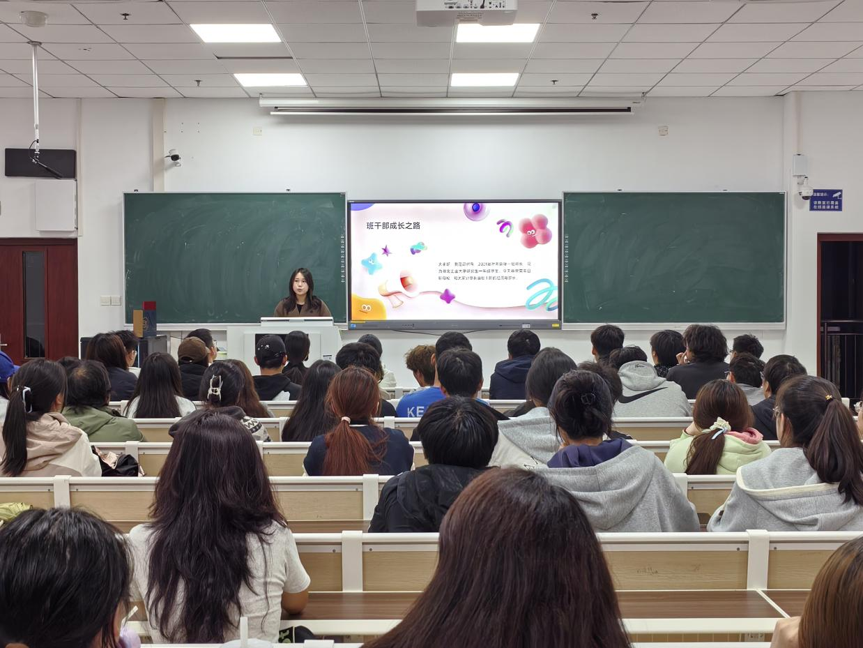 在学生时代,担任班干部不仅是一份荣誉,更是一份沉甸甸的责任。11月7日晚,管理系于南综006教室组织召开了2025级新生班干部培训会,特邀优秀校友邵代乐返校分享大学期间担任班干部的经验与感悟,助力新生干部快速适应角色、提升服务能力。