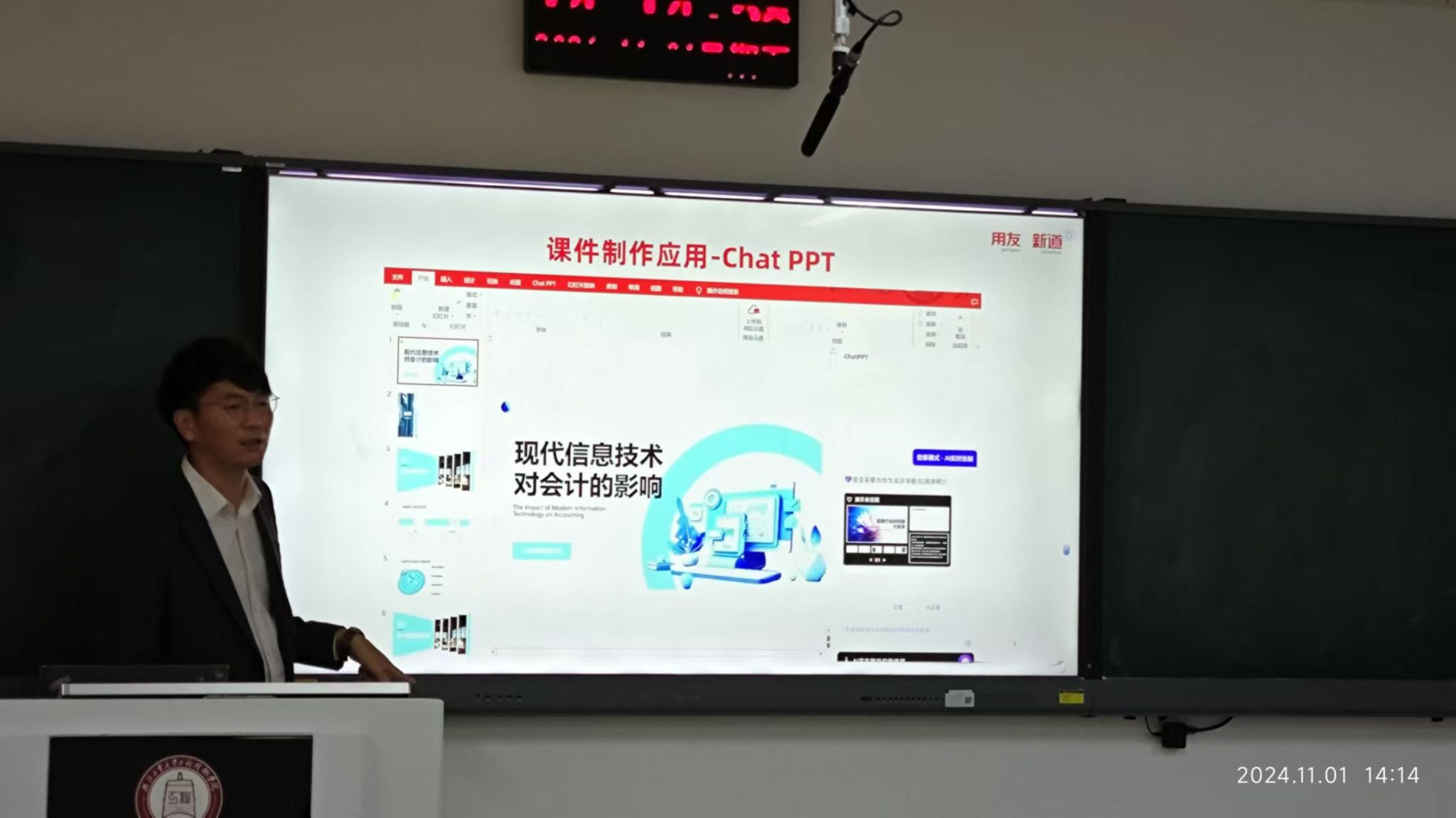 管理系财管教研室协同新道科技股份有限公司于2024年11月1日在南综楼503举行了主题为:如何利用数字化工具提升教师教学质量的专题研讨会。本次教研会旨在深入探讨和分享数字化工具在现代教育中的应用与前景,特别是它们如何帮助教师提升教学质量和效率。会议由管理系副主任许立志主持。