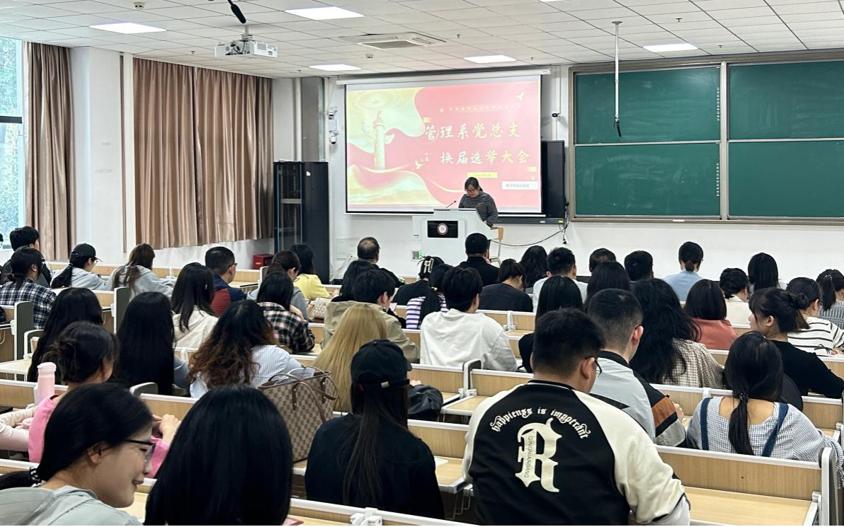3月26日中午,管理系党总支换届选举大会在南综001顺利召开。本次参会人员包括学院纪委书记宋建林、管理系全体教师党员和学生党员。