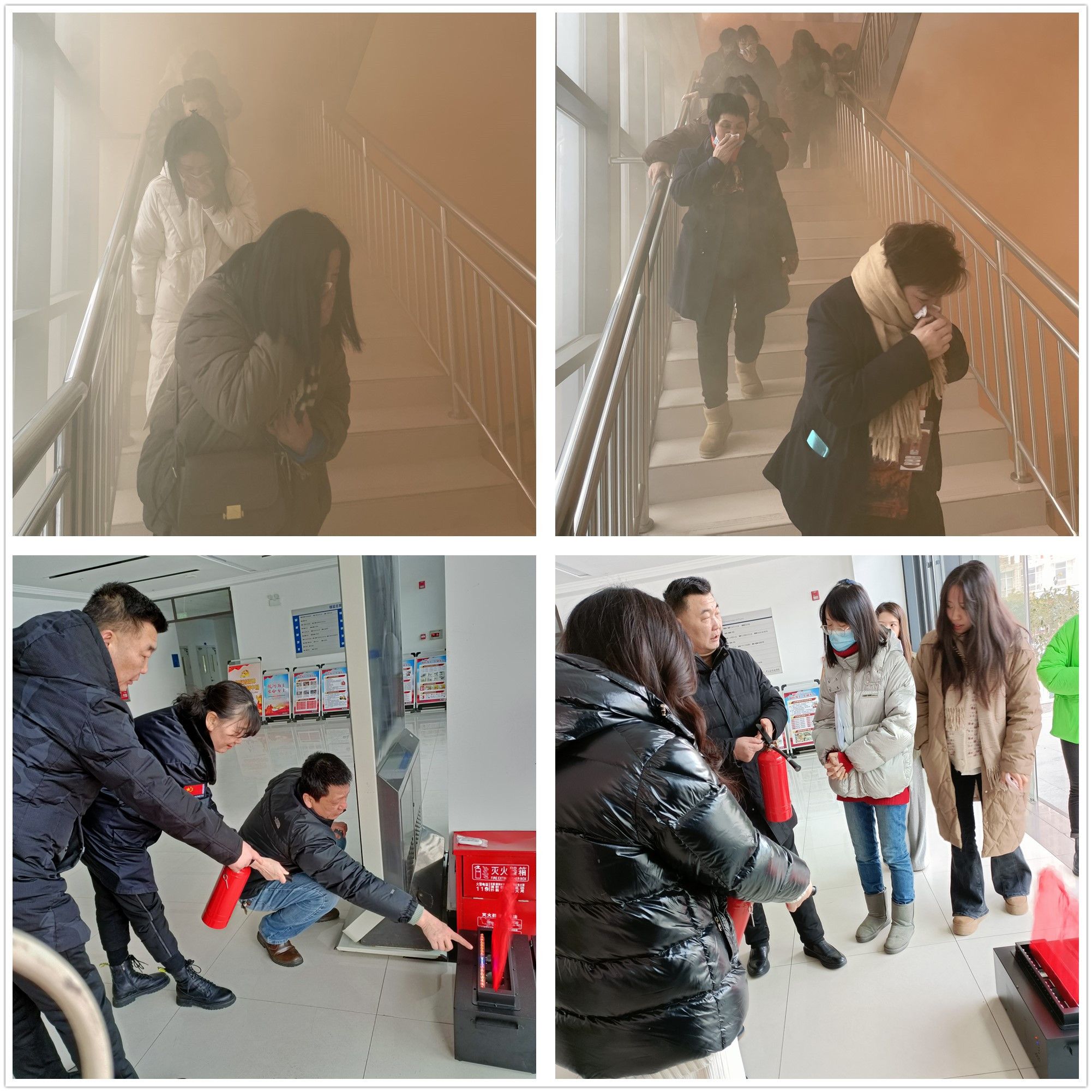培训会后,楼道涌出一阵浓烟,急促的警报声响起,消防教官宣布逃生演练开始。负责疏散的宿管员迅速到达指定位置指导逃生路线,保安员指挥演练人员拿起湿毛巾捂住口鼻,弯着腰沿设定安全逃生路线有序疏散,跑到指定安全地带。