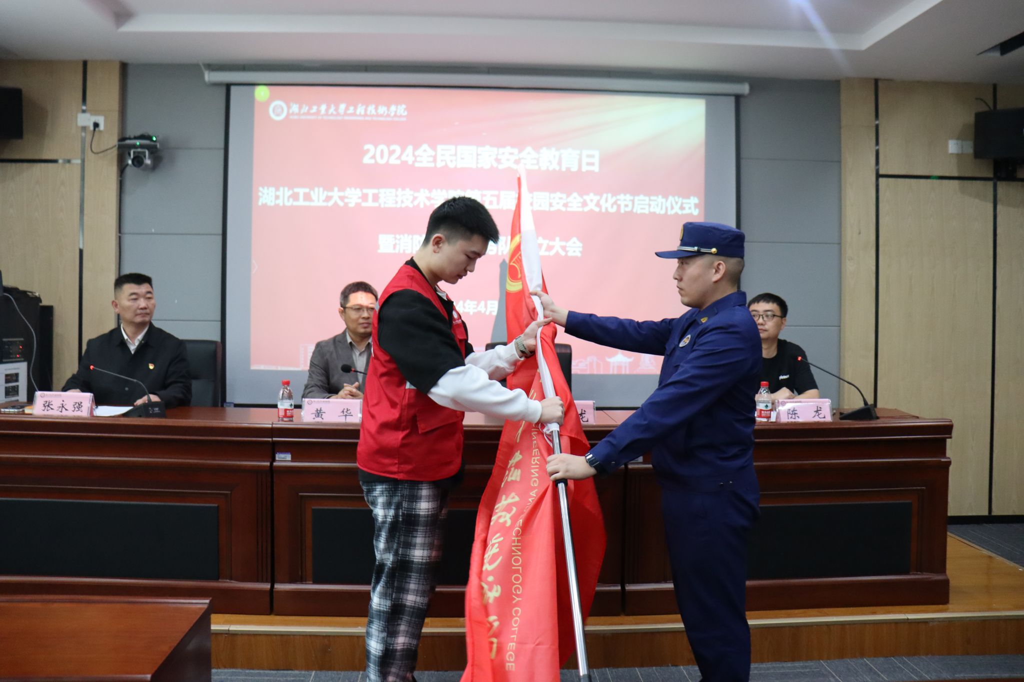 会上,张永强宣读了《关于成立学院消防应急服务队的通知》,对消防应急服务队的组织形式、基本职责和基本任务作了具体说明。随后,王子龙向消防应急服务队授旗。