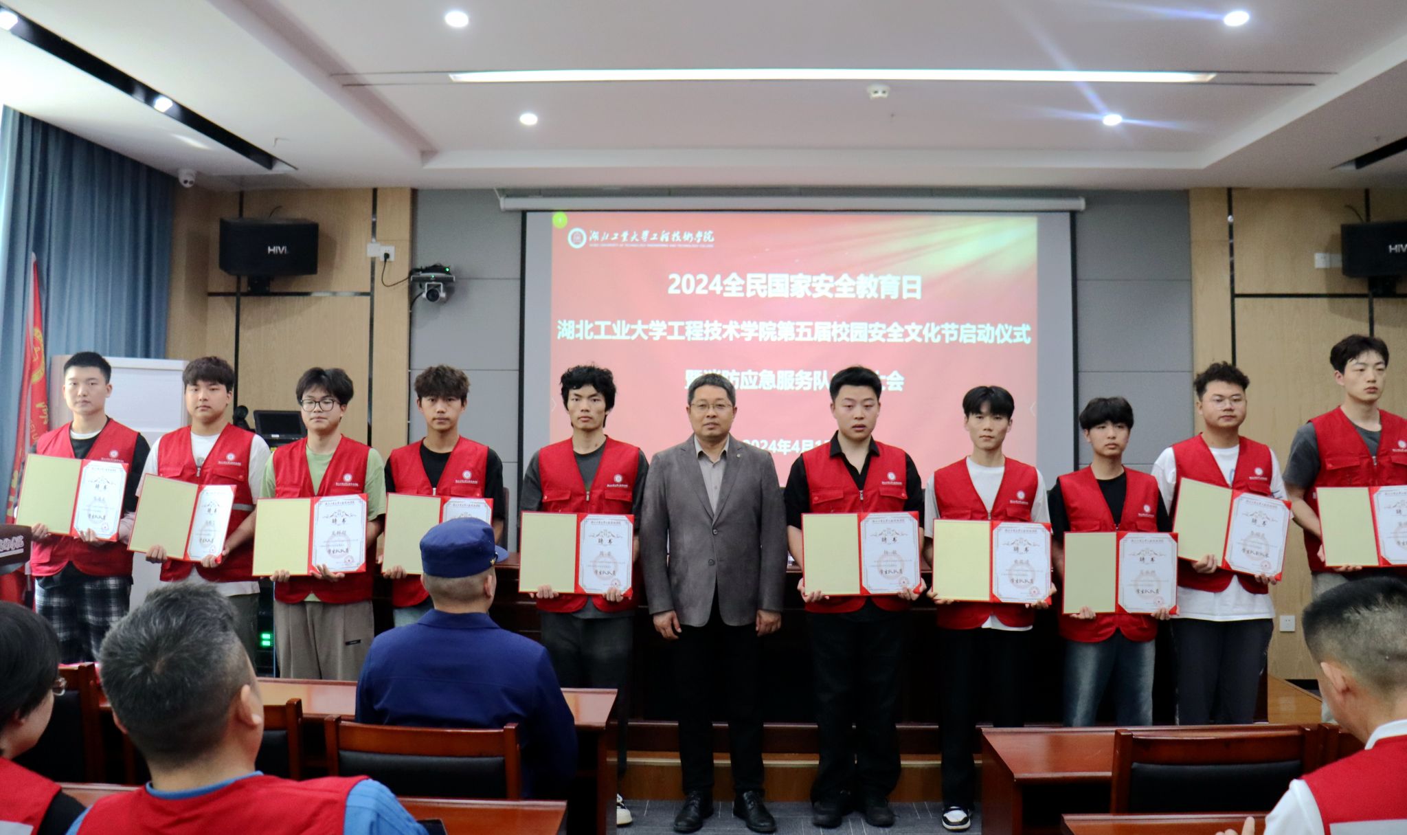 黄华为消防应急服务队成员颁发聘书并发表讲话。他指出,近年来学院以安全文化节为载体,把校园安全重点放在事前预防上,成立消防应急服务队是为了加强学院的消防安全工作,提高师生的消防意识,增强自我保护能力,提高校园的整体防灾减灾能力。同时对学院消防应急服务队提出四点要求:一要牢记使命,勇于担当;二要加强学习,提高素质;三要团结协作,共同应对;四要定期组织师生开展消防安全知识培训和逃生演练,推进消防知识宣传和火灾隐患整治活动深入开展,逐步形成“人人讲安全、个个会应急”的良好氛围,为建设和谐优良的消防安全环境、创建平安校园做出积极贡献。