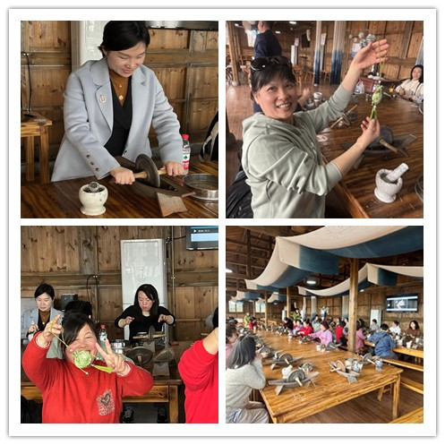 微风正好,阳光不燥。遇田轩里,大家根据讲解,开展巧手制作艾草香囊,研磨、捣碎、装袋......一个个香囊成品展现,成功的喜悦洋溢在每张笑脸上;随后扎染布扇,老师们开始根据自己的想法给布扇进行点缀式染色,殊不知由于心急染成了一副副意想不到的画面,开心的笑声不绝于耳。田间地头走一走,自然美景都会有,徜徉于田间小路,漫享美好时光,或悠然漫步,或驻足远眺,或定格美好,老师们沉浸式感受大自然的魅力,尽情享受着踏青的乐趣。
