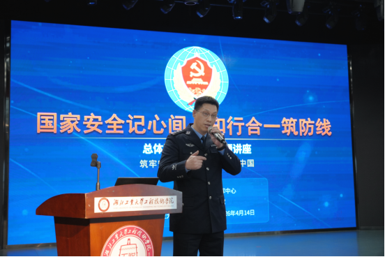 在第十一个全民国家安全教育日来临之际,4月14日下午,马克思主义学院联合保卫部在博雅园报告厅举行“师生同上一堂国家安全教育课”主题活动,同步启动第七届校园安全文化节。学院党委书记朱爱军、纪委书记宋建林、武汉市洪山区公安分局情报指挥中心政治教导员胡连军、湖工社区书记袁宏志、湖工社区副主任万凤及南湖派出所一级警长张琪出席活动。