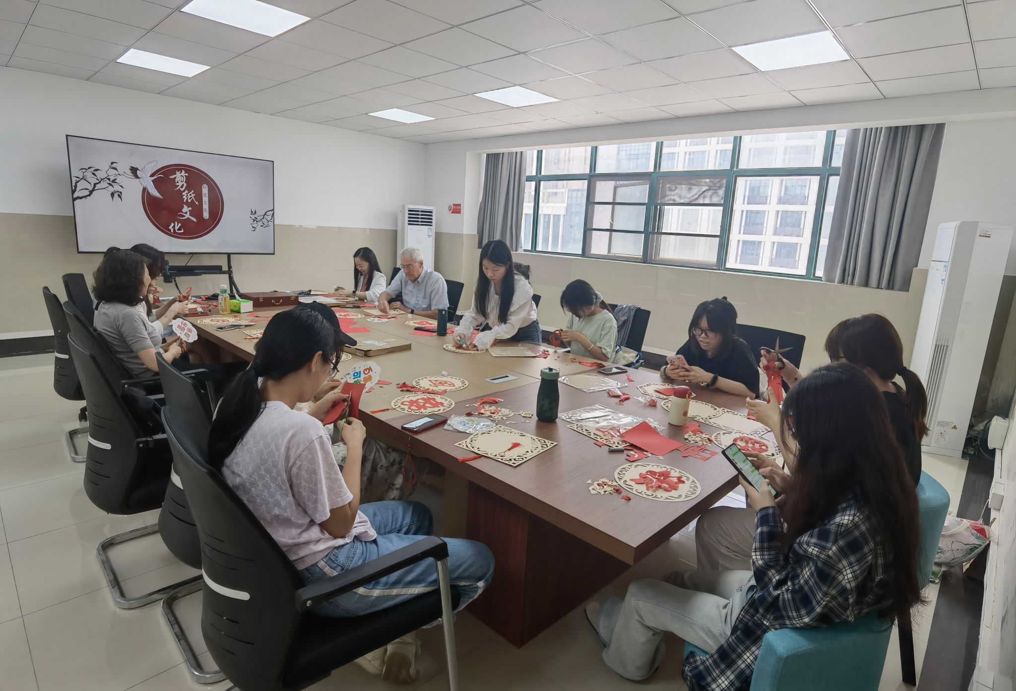 端午节来临之际,为弘扬中华民族优秀传统文化,充分挖掘“端午节”文化内涵,丰富师生精神文化生活,6月6日上午,马克思主义理论课部荆楚文化社在南教五楼会议室举办了一场端午节特别活动——中国剪纸。马克思主义理论课部教师团队和荆楚文化社的学生们参加了此次活动。此外,特别邀请了外国语系的外教Jim与大家共同体验了这项中国传统文化。