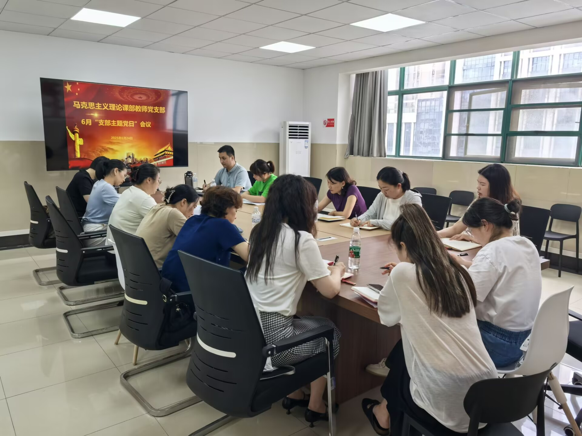 6月24日中午,马克思主义理论课部教师党支部在南教五楼会议室开展了“弘扬三大精神、锤炼过硬作风、激励担当作为”主题党日活动。全体党员教师参加活动,活动由党支部书记王沛主持。