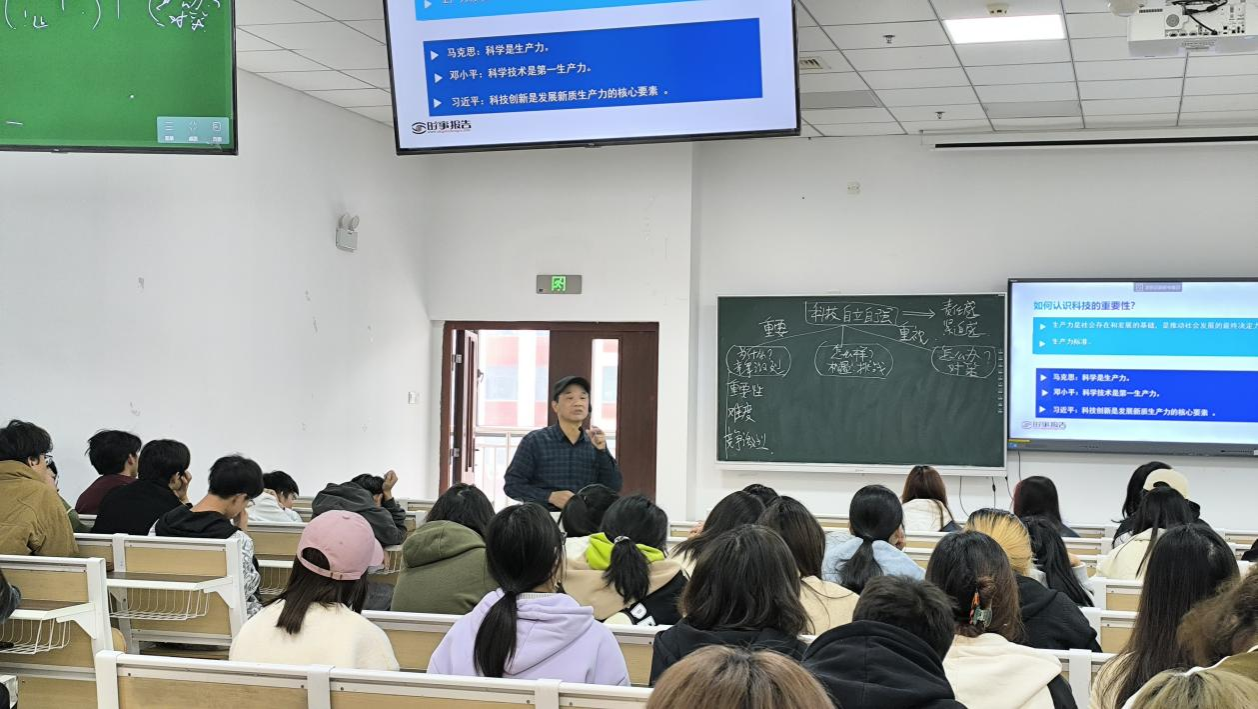 课上,林兴发教授从“为什么”、“怎么样”和“怎么办”三个方面,对我国加快实现高水平科技自立自强进行了讲解。授课过程深入浅入,逻辑性强,让学生不仅收获了知识,而且提高了独立分析问题的能力。林兴发教授还结合多年的教学经验,在管理好手机、提高学生抬头率、与学生展开有效互动等教学痛点问题上采取了具有针对性、有效性的办法,为听课教师们展示了出色的课堂管理应有的教学状态。
