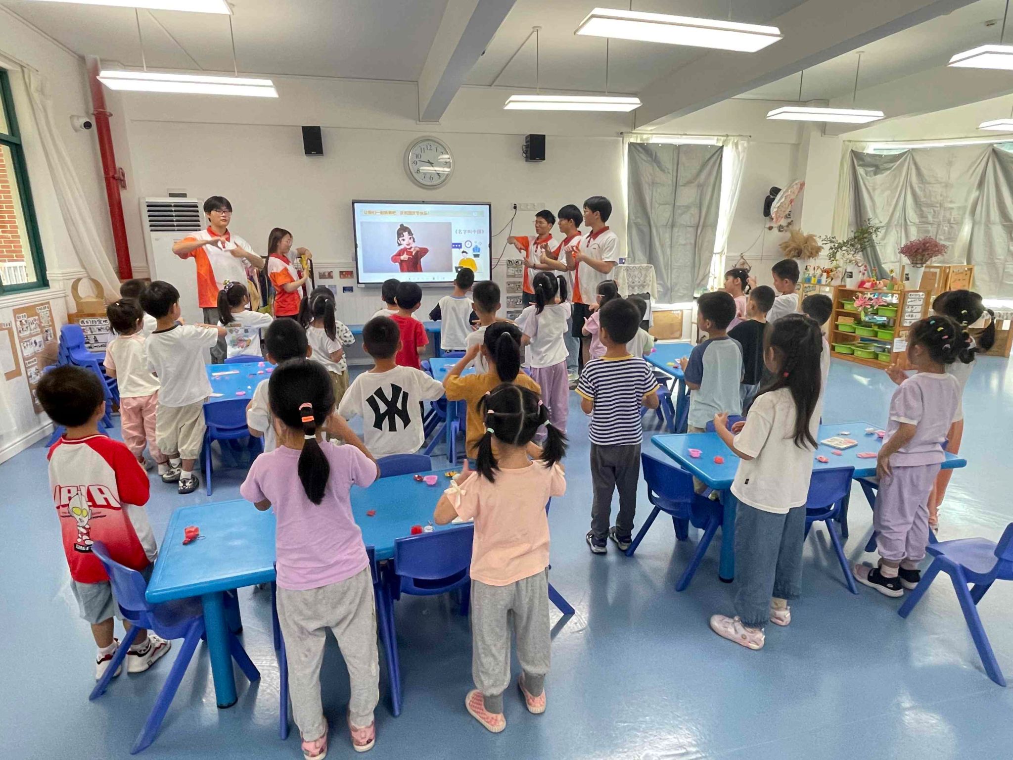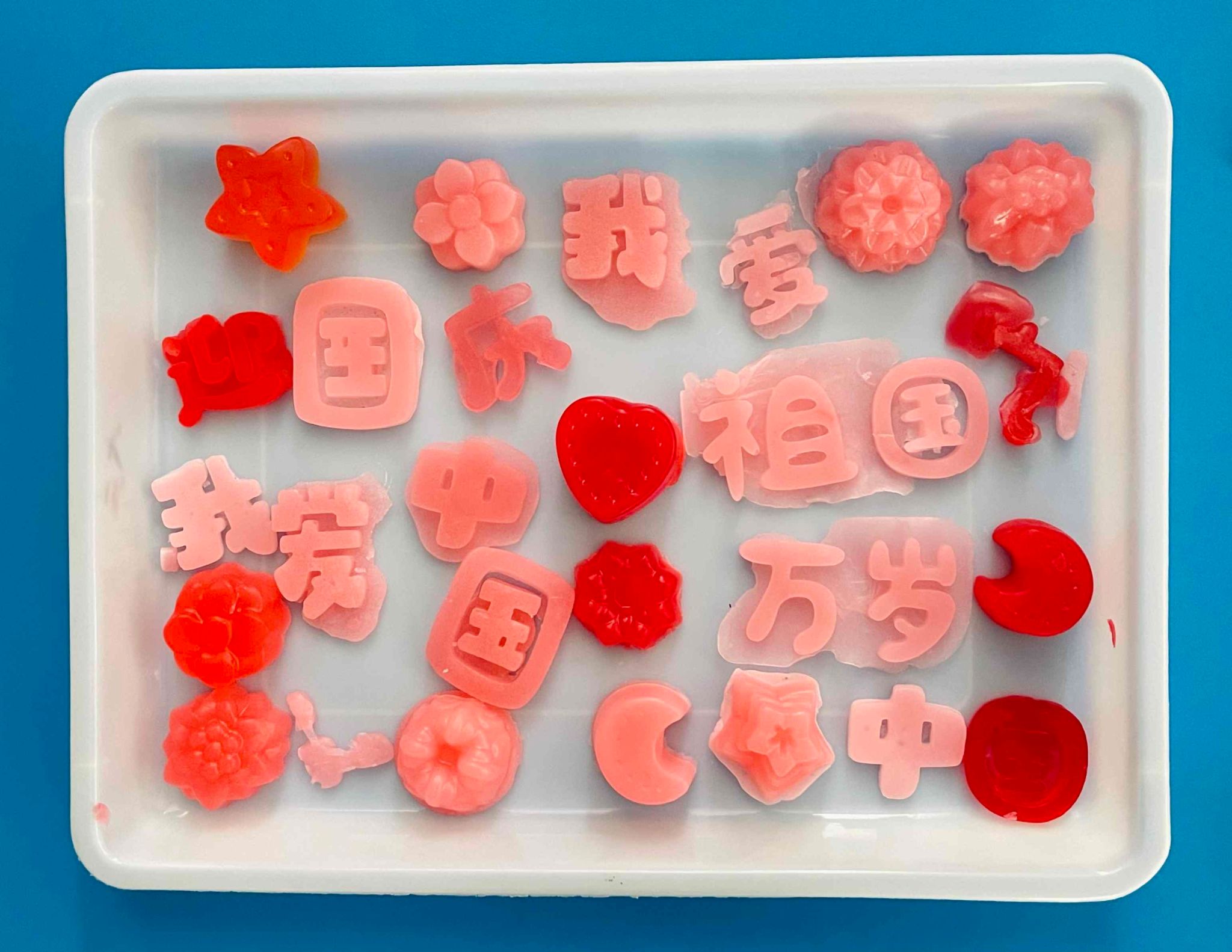 整场活动共四个环节,第一环节学生党员带领着小朋友们共同了解国庆节的由来,让孩子们深入了解祖国的历史,孩子们听得津津有味,对祖国的热爱之情油然而生。紧接着,进入制作爱国主题香皂,由小朋友们加入色素,将液体皂基倒入模具中,在等待香皂凝固的过程中,进行了第三环节知识竞赛与答疑,现场爱国气氛热烈非凡。最后,学生党员们带领小朋友们集体跳手势舞《名字叫中国》,以这种特别的方式庆祝国庆。孩子们在舞蹈中感受到了节日的喜悦和祖国的繁荣昌盛。活动尾声,香皂逐渐凝固后,小朋友们将肥皂脱模,手持着亲手制作的爱国肥皂欣喜万分。