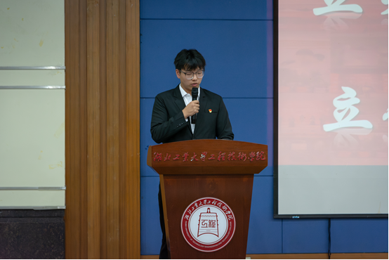 土木工程系学生会主席管润同学以立德为起点,围绕立学、立能、立行、立身四大方面,分享了自己在大学期间的成长经历和宝贵经验。他以个人实例为切入点,生动讲述了如何在学业上精益求精、在能力提升上勇于探索、在行动实践上敢于担当、在品德修养上不断砥砺的奋斗历程。分享结束后,管润同学还呼吁广大同学积极参与学业帮扶活动,发挥自身优势,为身边的同学提供力所能及的帮助。