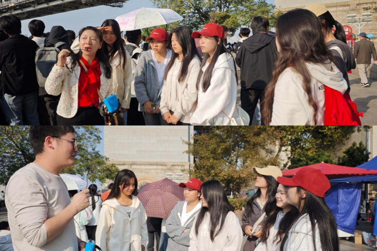 第二站,同学们来到了举世闻名的武汉长江大桥。武汉长江大桥是新中国成立后在长江上修建的第一座公铁两用桥,它的建成具有极其重要的意义。专业老师在现场为大家讲解了武汉长江大桥的设计理念、施工过程以及在交通运输等方面发挥的重要作用。在讲解完之后,老师带领同学们走上了这座具有雄伟的气势和巧妙的工程设计的大桥,让同学们亲身体验桥体的坚固与宏伟还有作为土木工程师的自豪与责任。