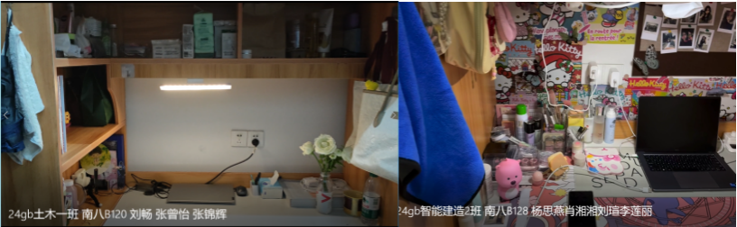 土木系学子将废旧物品、环保材料及自然绿植融入寝室设计,装扮自己的寝室,共同打造一个温馨、绿色、健康、舒适的生活环境。体现了土木系学生的寝室文明建设成果,温馨友爱的寝室氛围,展现了新时代大学生昂扬向上、团结齐心的青年形象与蓬勃朝气。