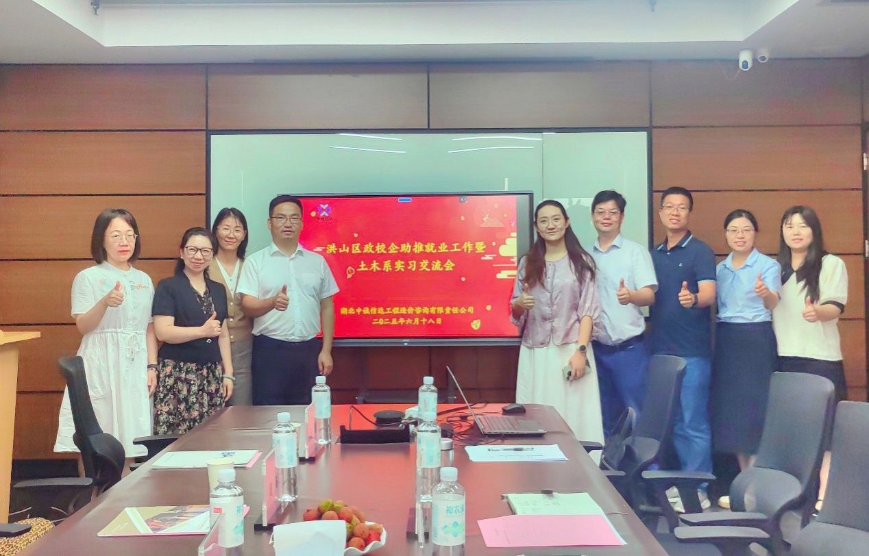 6月18日,洪山区政校企助推就业工作暨土木系实习交流会在洪山区创意天地湖北中诚信达公司举行。洪山区科技创新和人才服务中心副主任夏淑娴、学院副院长姜伟参加会议。