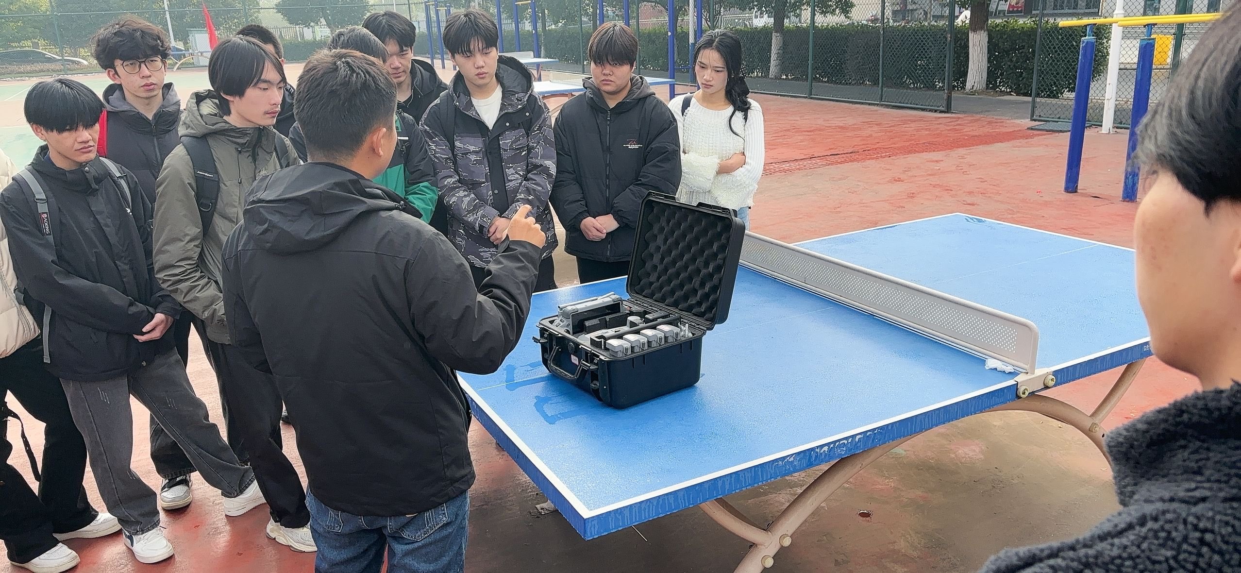 户外实景教学环节,学校运动场化身“智能测绘实训场”。企业技术人员现场展示了无人机测量设备的快速部署、参数设置、航飞规划及数据回传的全过程,并通过实时测绘成果展现了无人机测量的效率与精度。学生在技术人员指导下进行观摩与实践,积极提问互动,提升了将理论知识转化为实际操作的能力。
