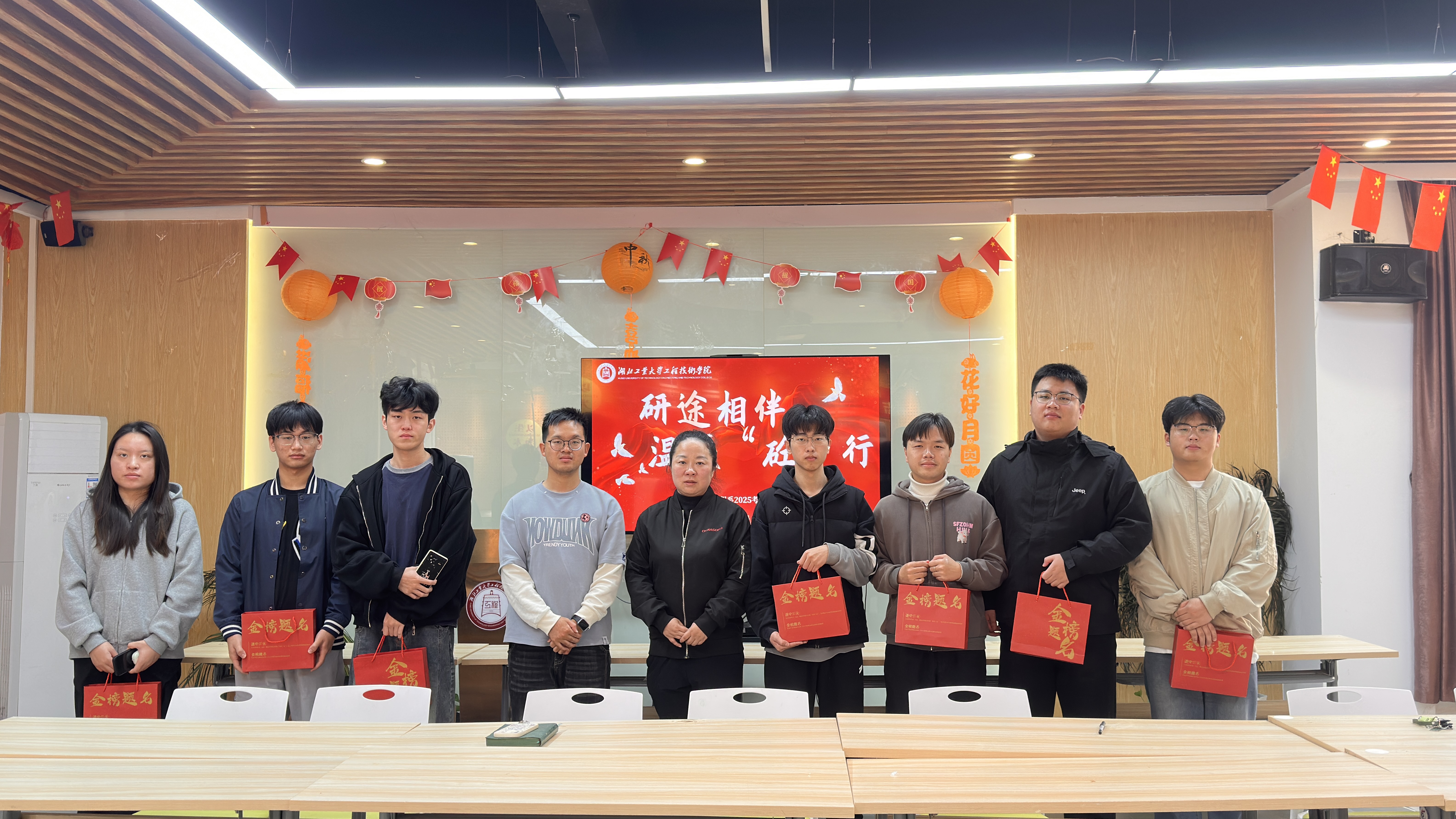 随后,老师们为同学们逐一发放精心筹备的“考研加油包”。礼包内定制的祝福语明信片,还有考试专用文具套装,每一份物品都承载着老师们的细致关怀与美好期许。老师们亲手将加油包送到学子手中,详细询问大家的备考进度与实际需求,耐心解答关于考前心态调整、专业知识梳理等方面的疑问,叮嘱大家注意饮食作息,保持积极心态。