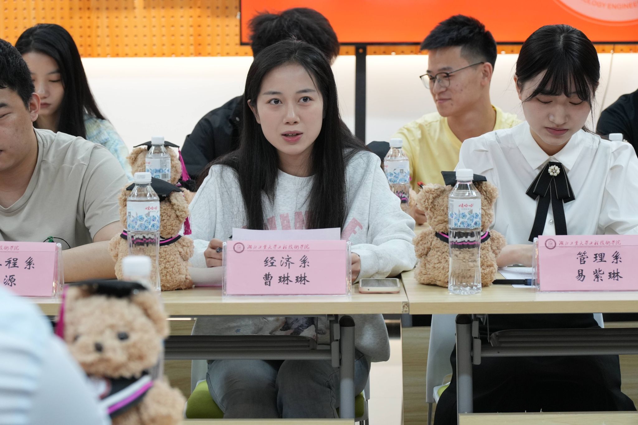 会上,毕业生代表们依次发言,介绍了自己的毕业去向、学习与成长经历、成绩与收获,对学院表达了感谢与祝愿。管理系毕业生易紫琳感谢学院提供的实践平台,让她从刚入校时当众说话都会脸红的“社恐”,成长为能够站上省级创新创业竞赛舞台的项目答辩人。外语系毕业生,学院2022年度感恩励志类“榜样人物”获得者梁秦畅深情的表示,感谢学院完善的奖助学金制度,帮助她顺利完成学业。毕业生代表们还围绕科研交流、学科建设、实习实践、学生工作、后勤保障等方面,结合自己的实际经历,提出了意见和建议。学院领导、职能部门负责人对毕业生代表们提出的问题予以认真答复,对毕业生代表提出的建议认真记录,并与毕业生代表们进行了充分交流讨论。