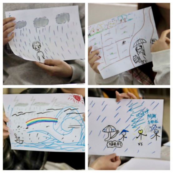 活动以“资助育人,关怀育心”为主题,通过沉浸式投入绘画和手作的过程,赋能受资助学生积极心理,了解压力应对。活动伊始,心理老师通过“滚雪球”的活动进行“破冰”,以此帮助大家拉近距离、放松身心。“雨中人”绘画测试拉开了心理探索的帷幕。同学们在绘制“雨中人”时,将内心对压力的感知以及应对方式具象化地展现于画作之中。每一幅画里的人物都承载着独特的故事与想法,成为表现同学们内心世界的一扇窗口。“我心流沙”让大家在创作过程中,体会到了从起初的混乱到和谐有序,感受到了心理的放松与治愈。