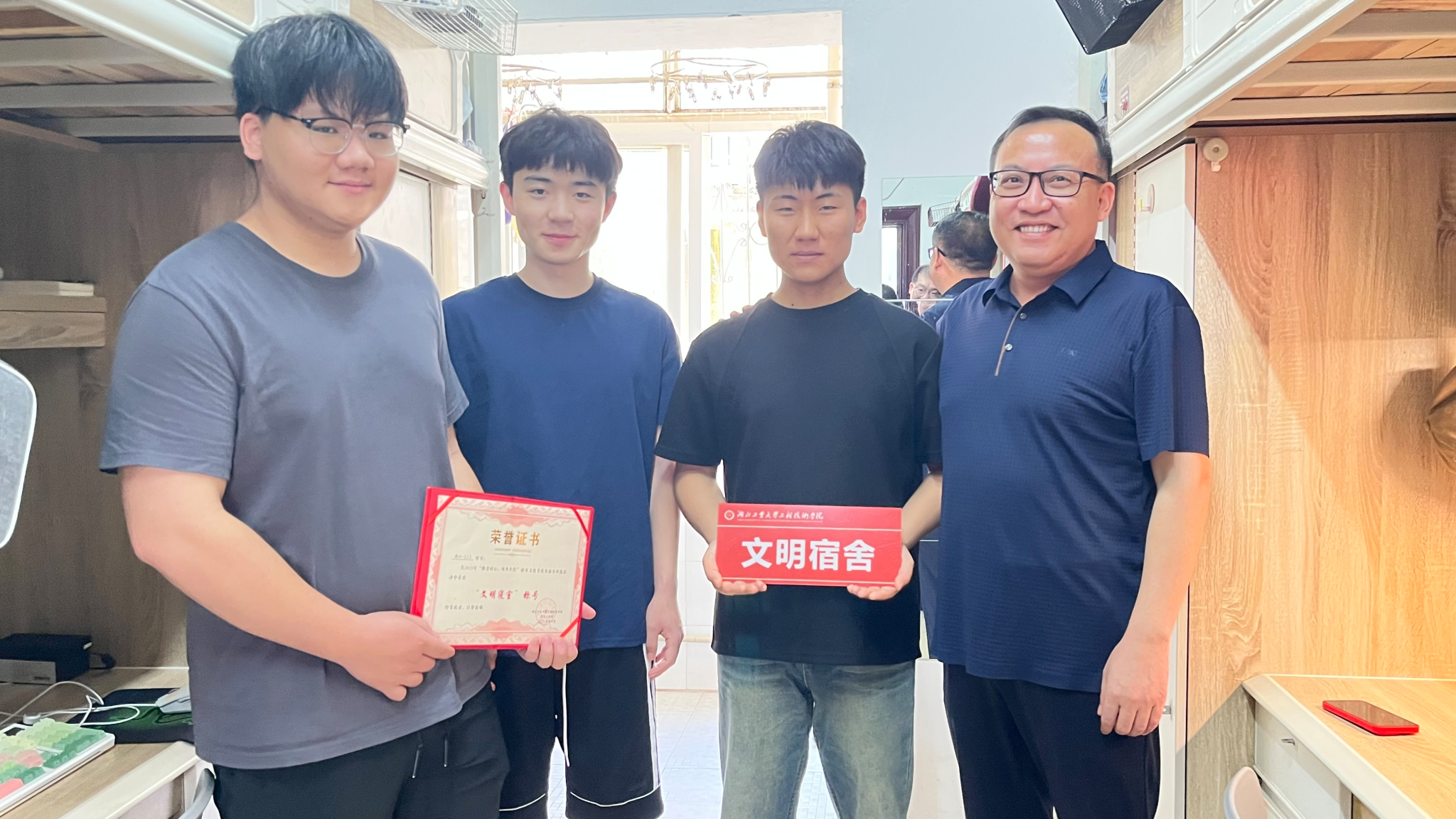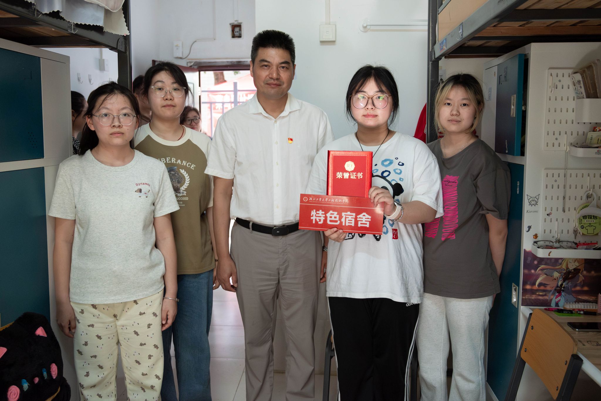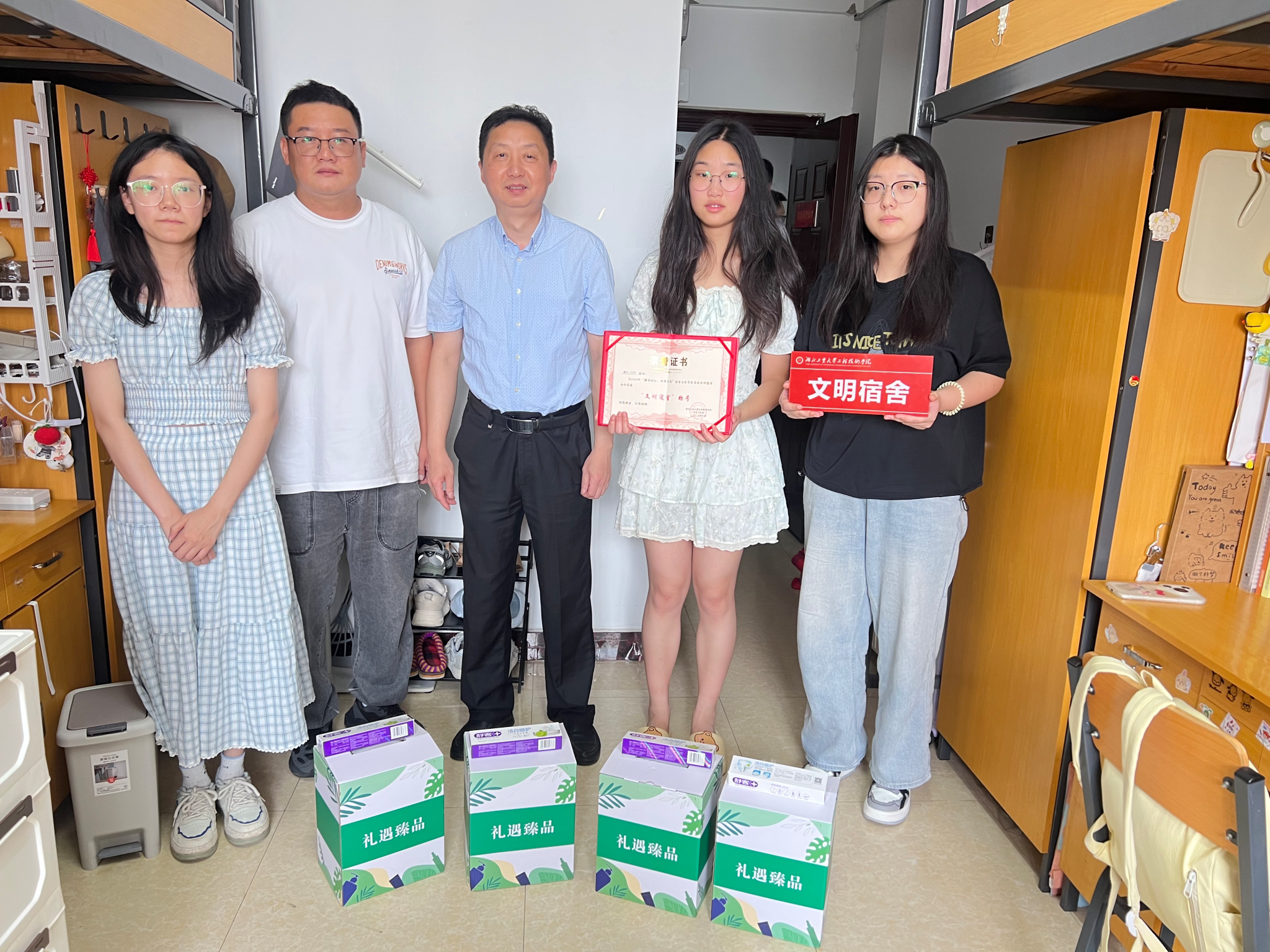走访过程中,院领导与学生亲切交谈,详细了解同学们的学习生活情况,倾听学生需求与建议,并为获奖宿舍颁发荣誉证书和定制奖品。这份荣誉不仅是对同学们在宿舍文化建设中辛勤付出的肯定,更成为激励他们继续前行的动力。同学们纷纷表示,要将宿舍打造成为温馨和谐的“精神家园”。