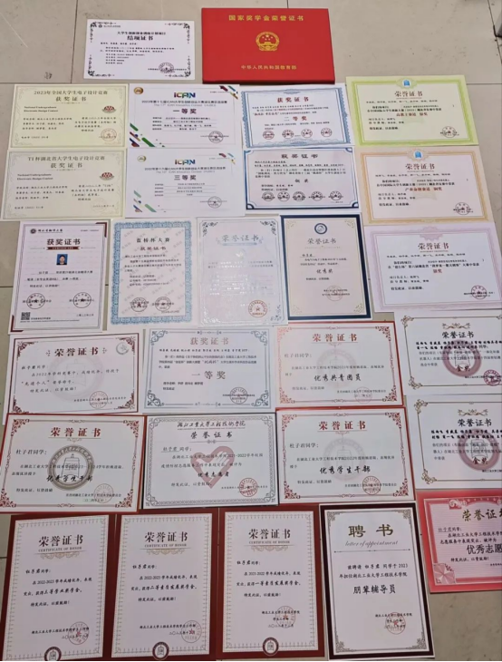 在成长的道路上,杜子君深切地感受到了挚友们的鼓励与支持的重要性。他尤为庆幸能与祝嘉禾同学相遇,这位益友在学习和备赛过程中都给予了他无私的指导和耐心的帮助。正是在祝嘉禾的影响下,杜子君逐渐克服了畏难情绪,学习成绩有了显著的提升,人也变得更加自信和坚韧!“众人拾柴火焰高。”在电子设计竞赛中,杜子君与队友们共同经历了漫长而艰辛的备赛过程。他们度过了一个暑假,甚至连续四天三夜不眠不休地投入到备赛中,最终克服了重重困难,成功完成了作品。作为队长,杜子君肩负着更大的责任,他领导着队友们从最初的组队讨论方案,到一次次的电路调试、程序编写等,其中遇到了无数的难题。但杜子君积极作为,充分发挥团队的力量,与队友们携手共进,最终取得了令人满意的成绩!这次经历不仅极大地提升了杜子君的专业能力,更让他深刻地体会到了团队合作的重要性!
